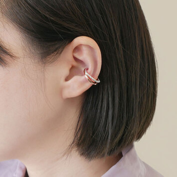プレーンとひねり、表情の異なる2本のラインが組み合わされたイヤーカフ。