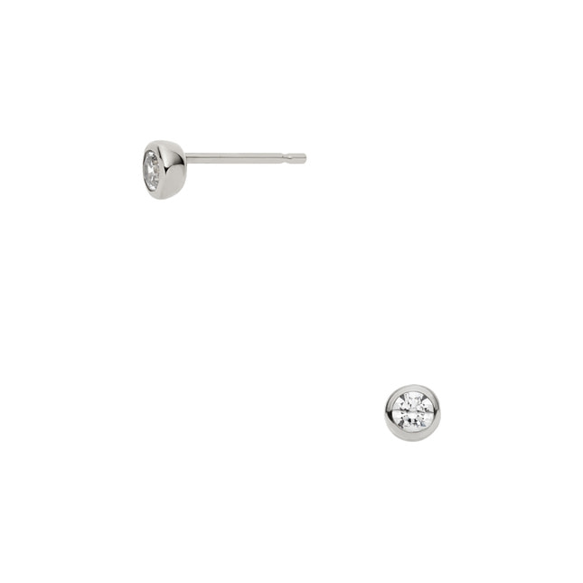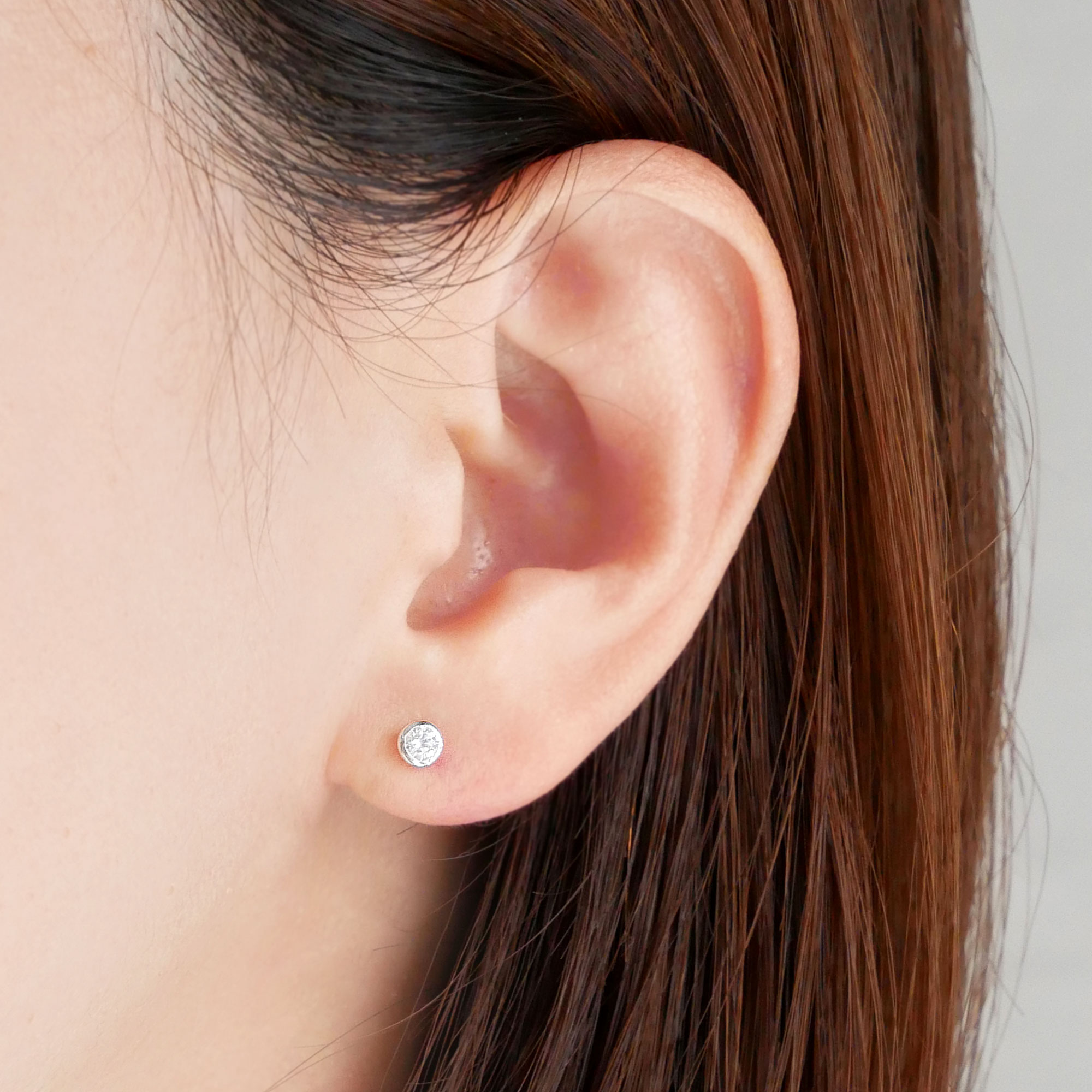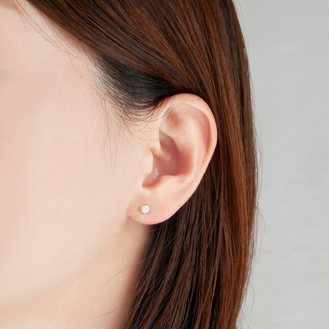 一粒のキュービックジルコニアをつややかなフレームで包んだベーシックなピアス。