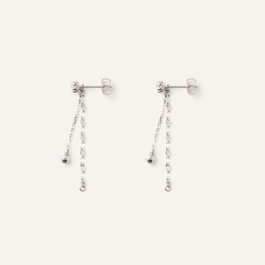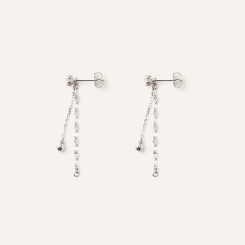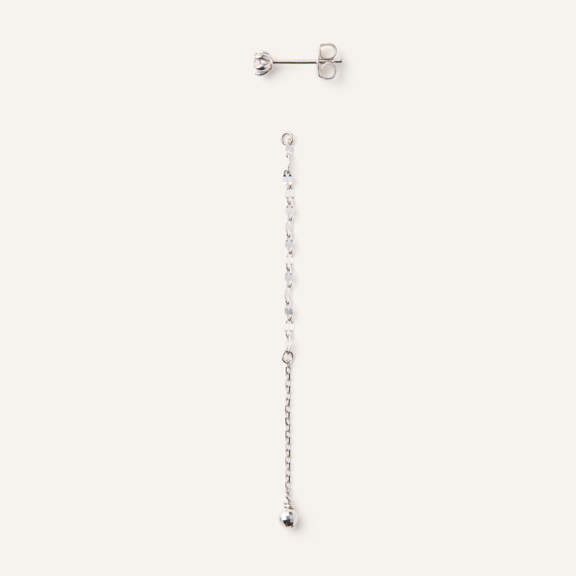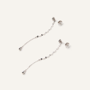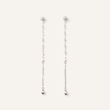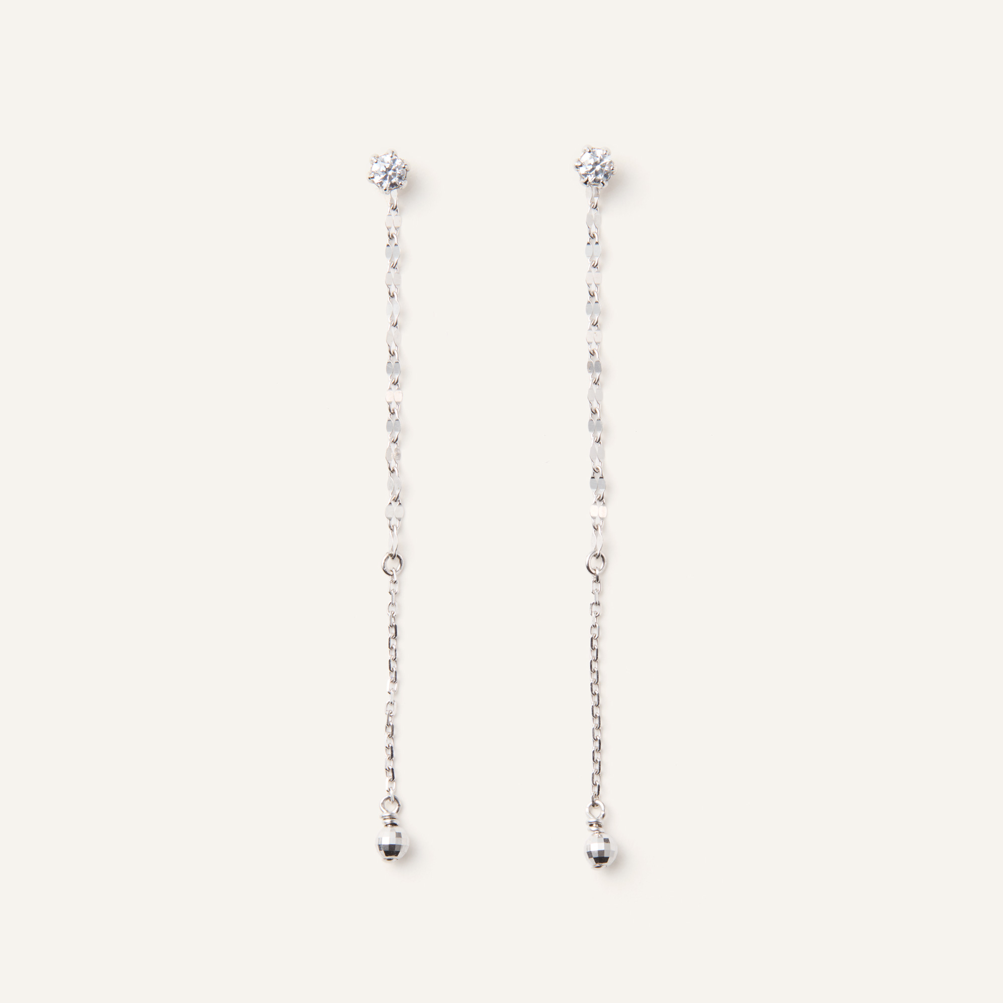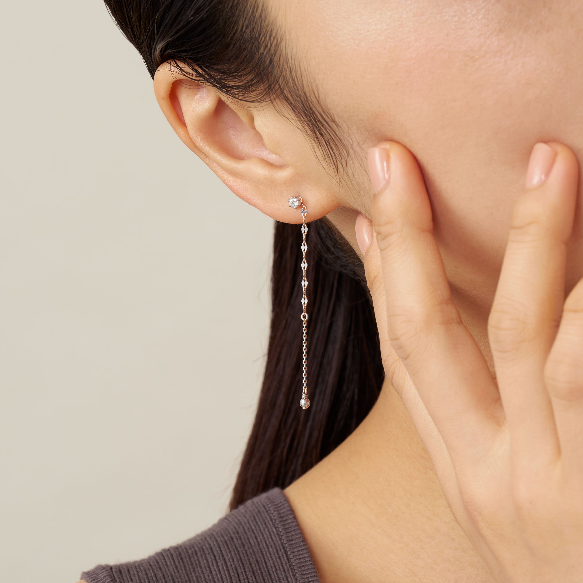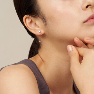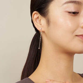 コーディネートに合わせて、キュービックジルコニア1石のスタッドピアスとしてシンプルに着けたり、チャームを付け、揺れ感のロングチェーンで上品に演出することができます。