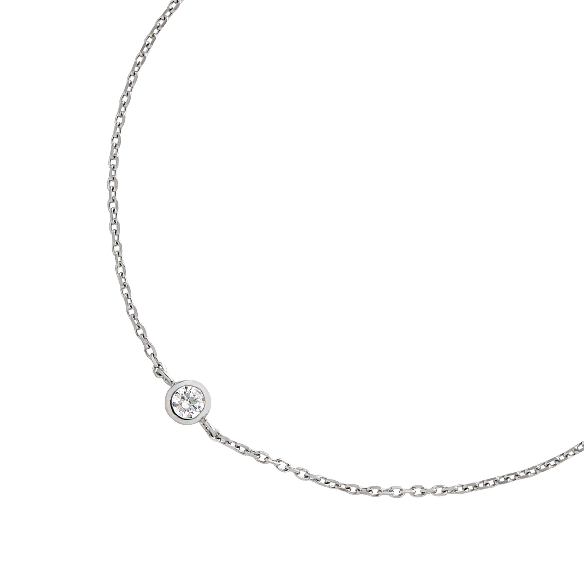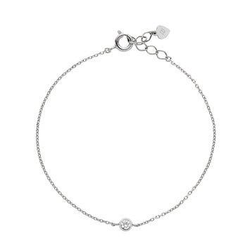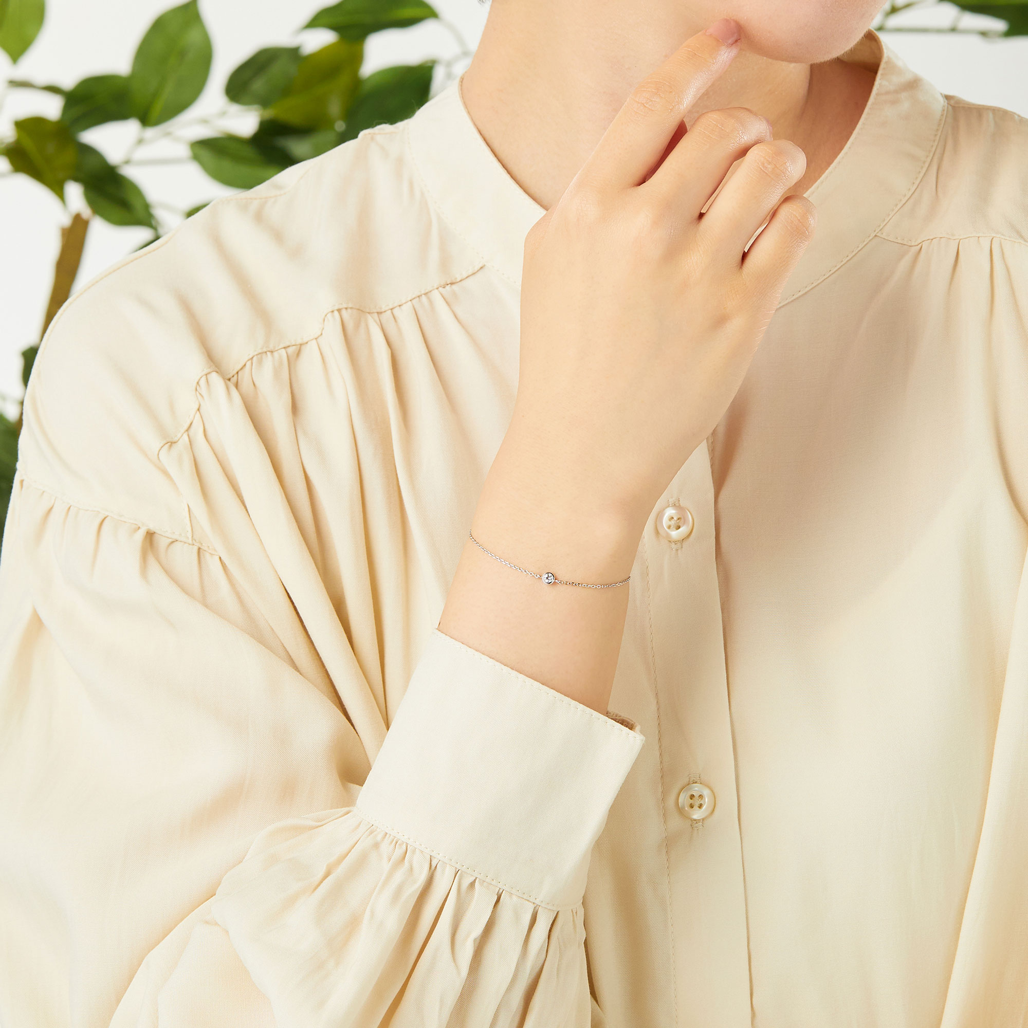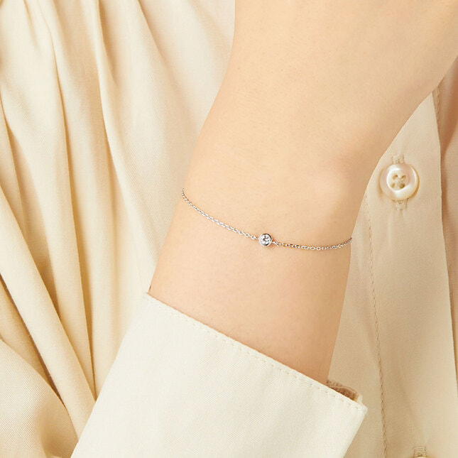 ホワイトゴールドカラーでなめらかに縁取られたキュービックジルコニアがあしらわれた、大人な印象のブレスレット。