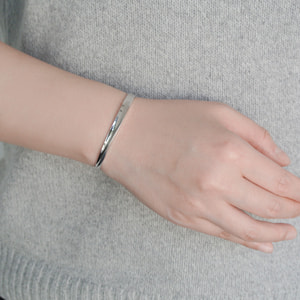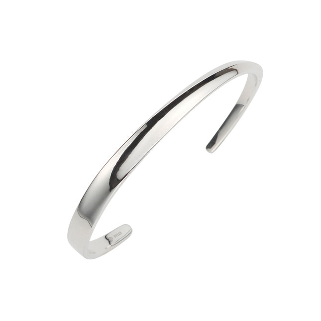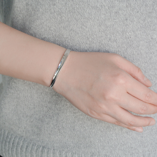 さわやかでクリーンな印象の、白く輝くシルバーバングル。シンプルでナチュラルな美しいラインが魅力的です。
