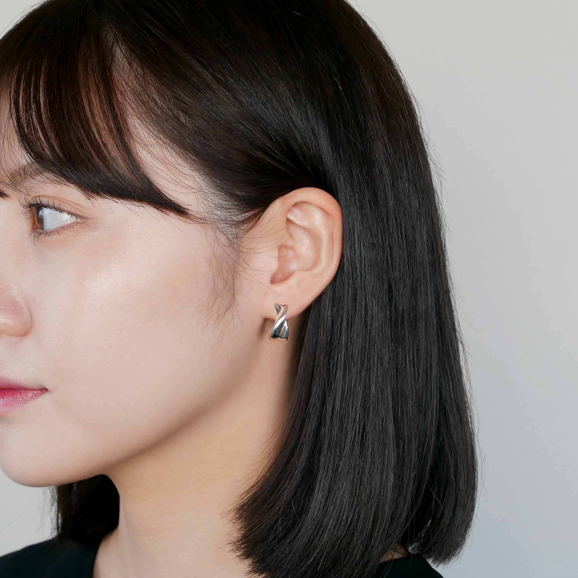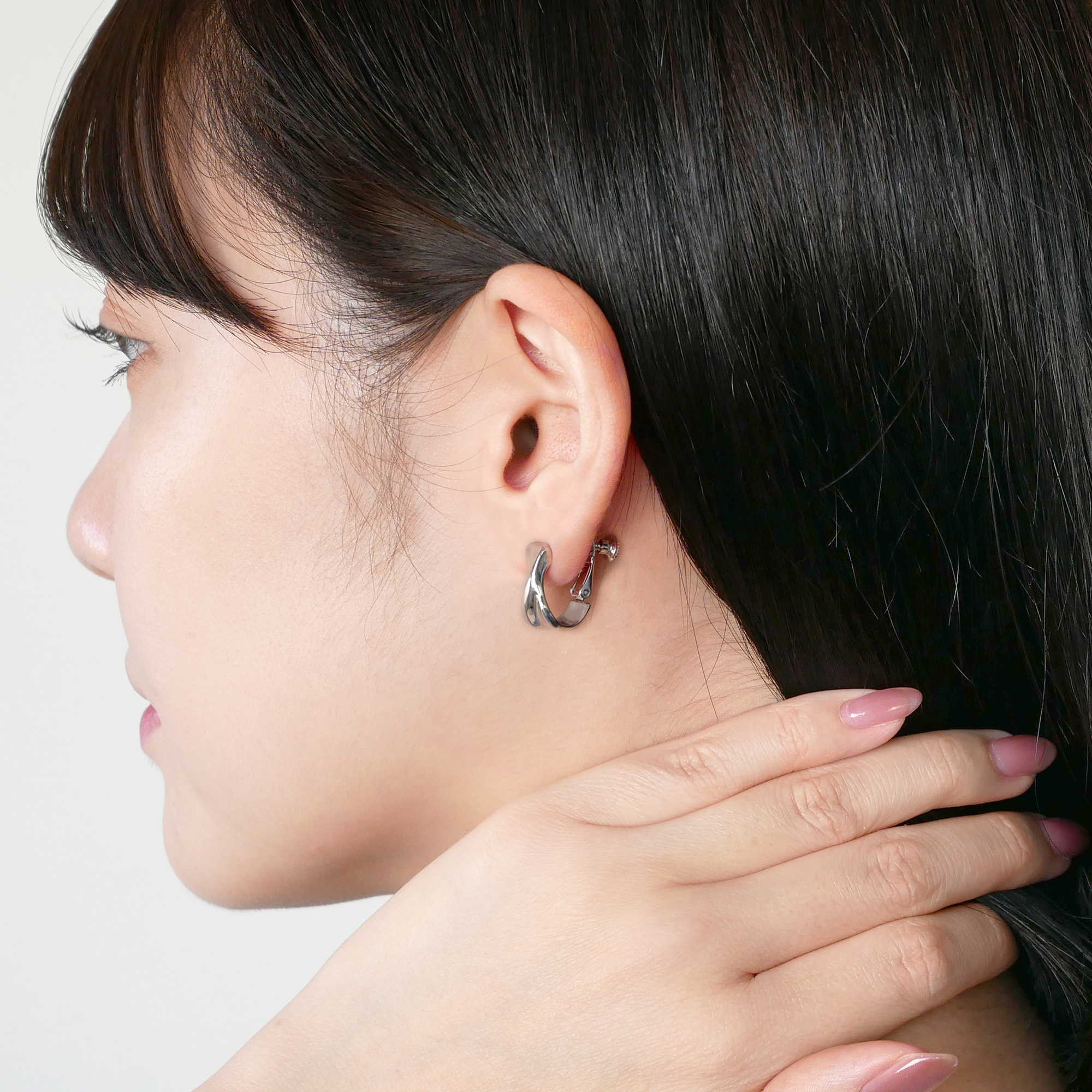 柔らかく有機的なフォルムが美しいシルバーのフープイヤリング。