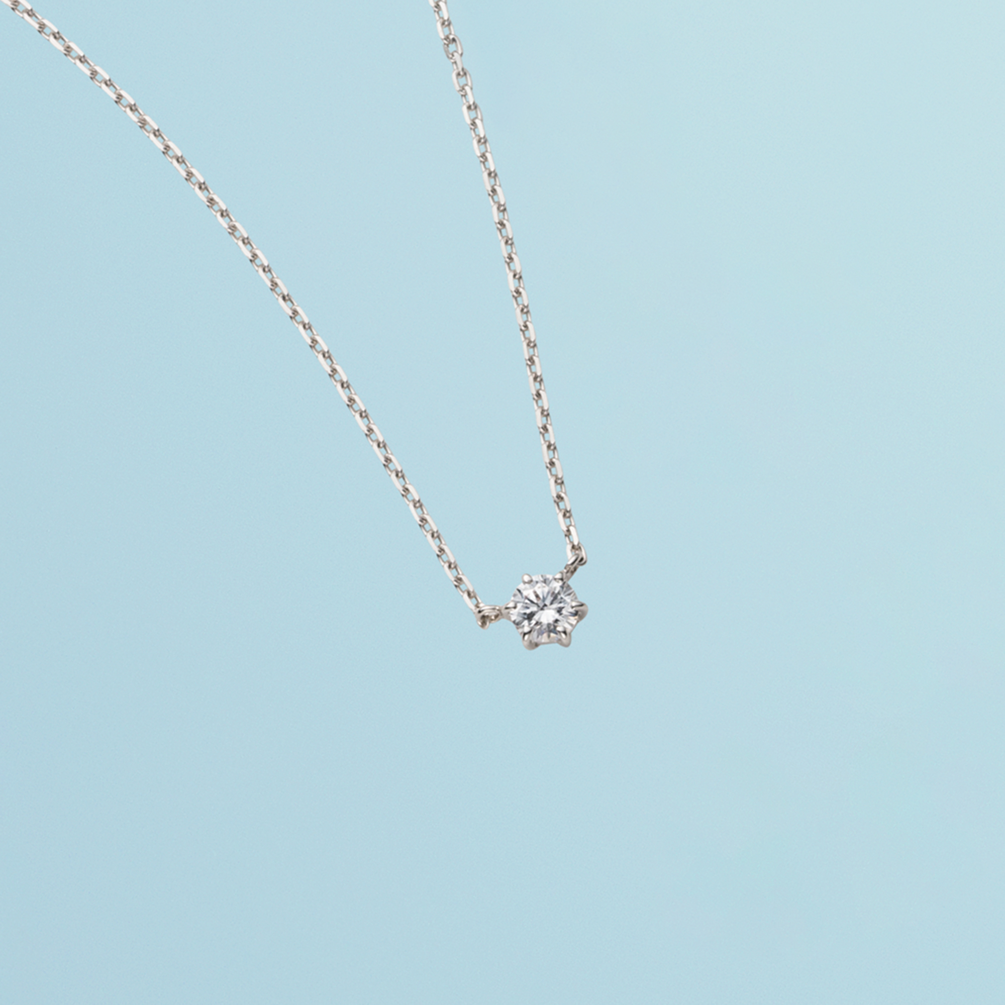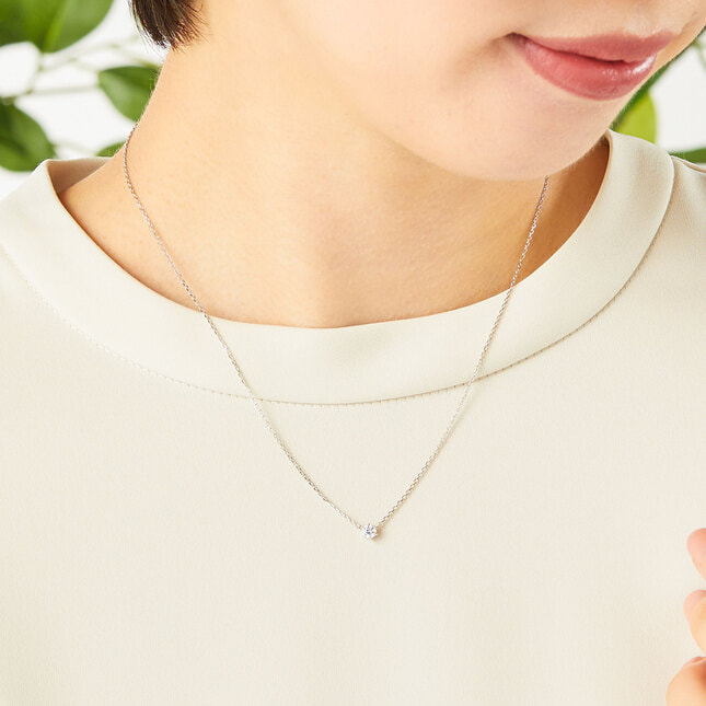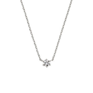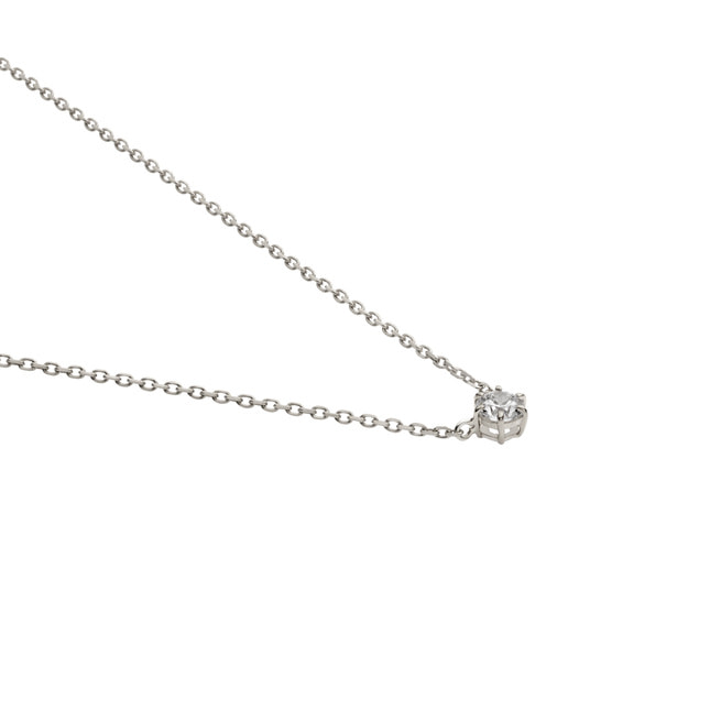 キュービックジルコニアをクラシカルな爪留めで仕上げた、定番の一粒石ネックレス。