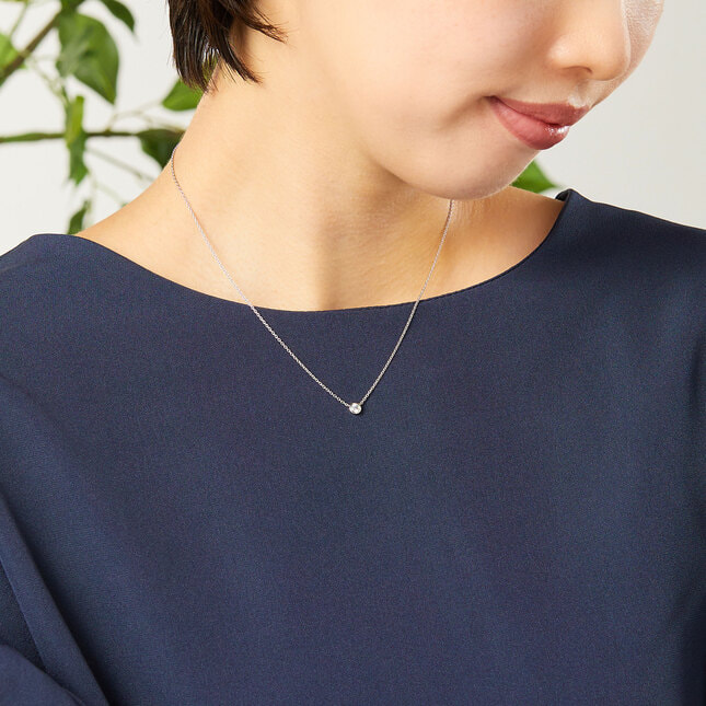 一粒のキュービックジルコニアが輝くベーシックなネックレス。