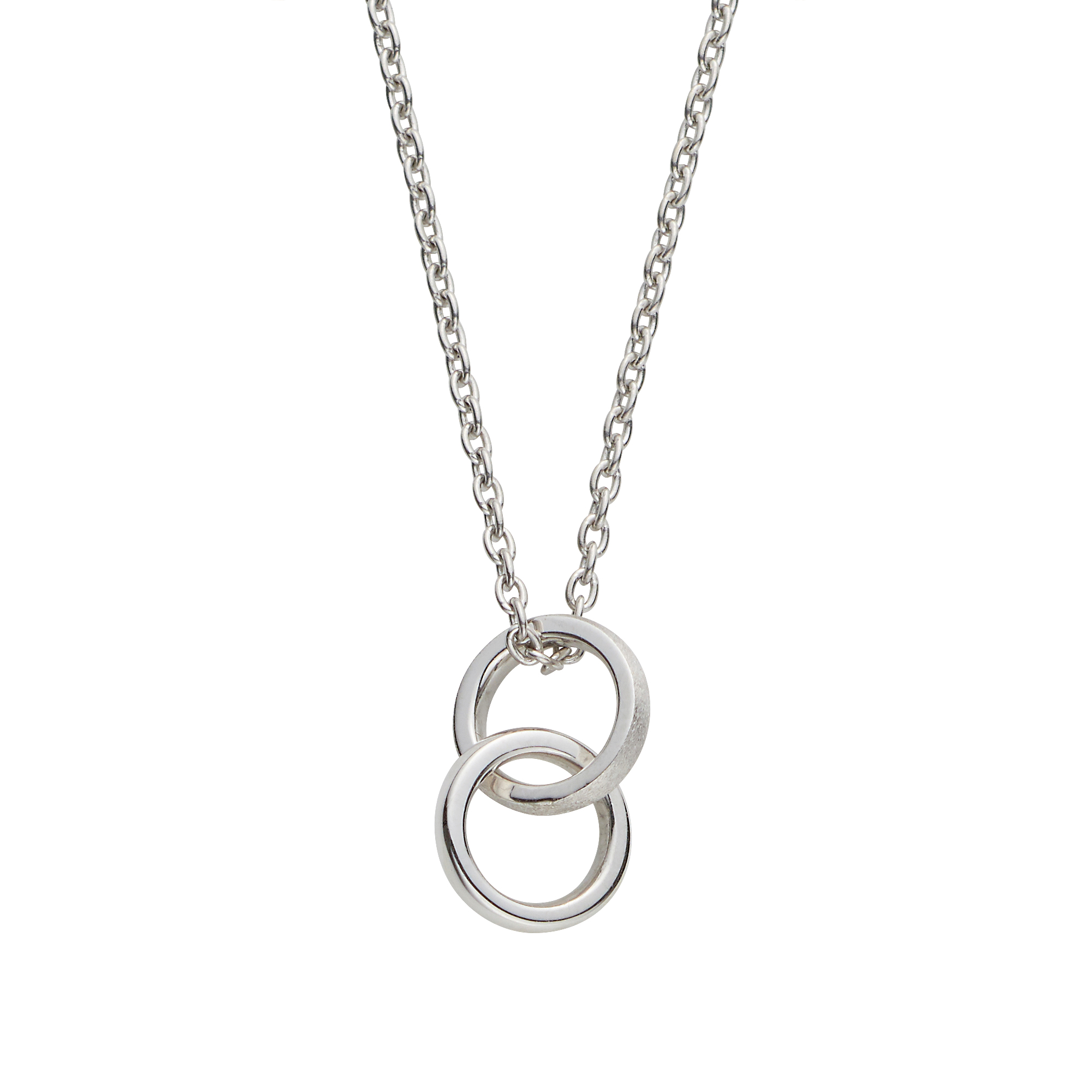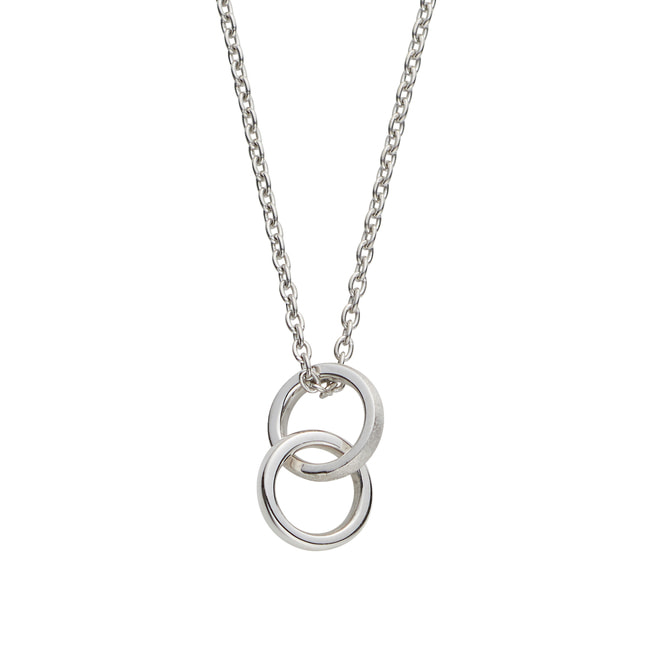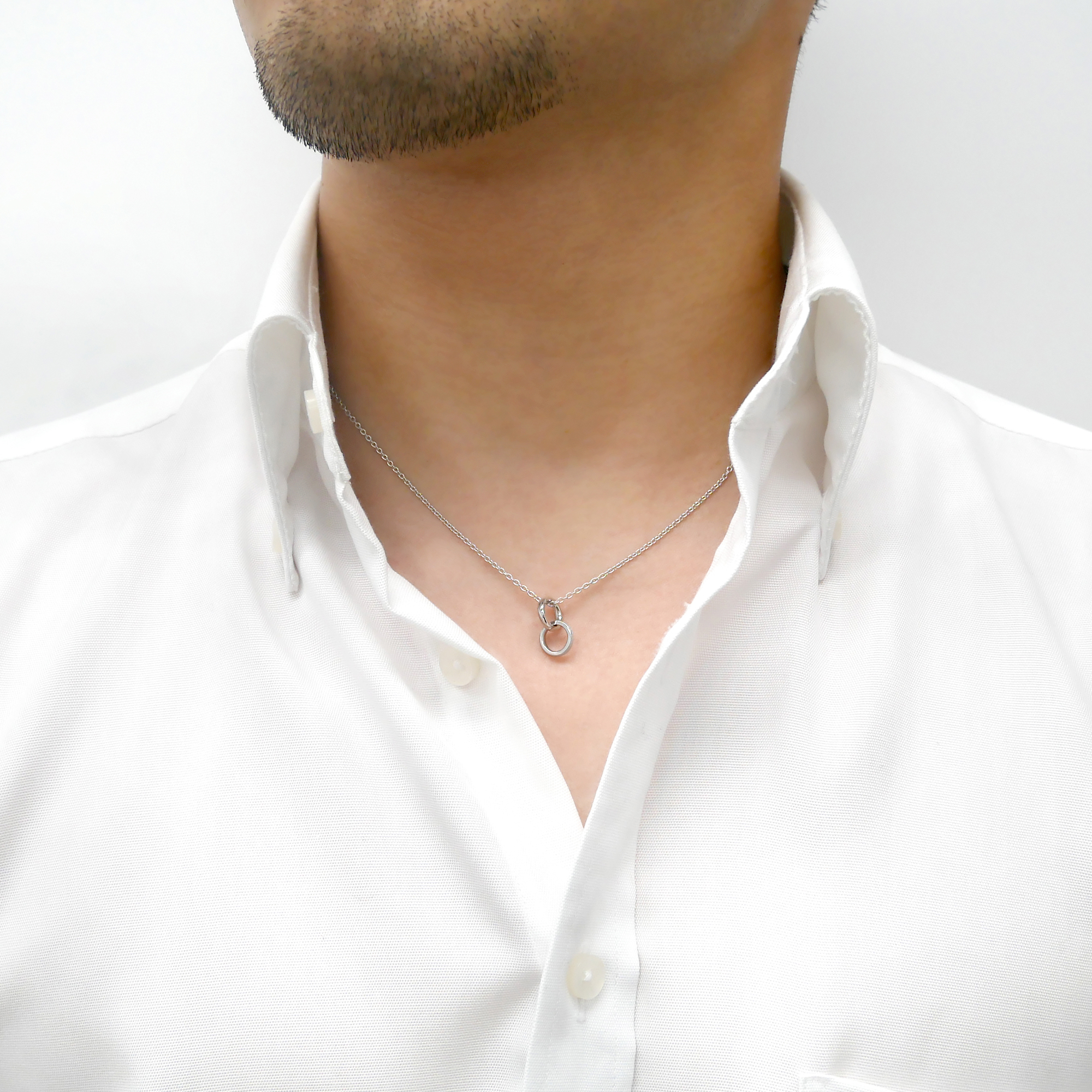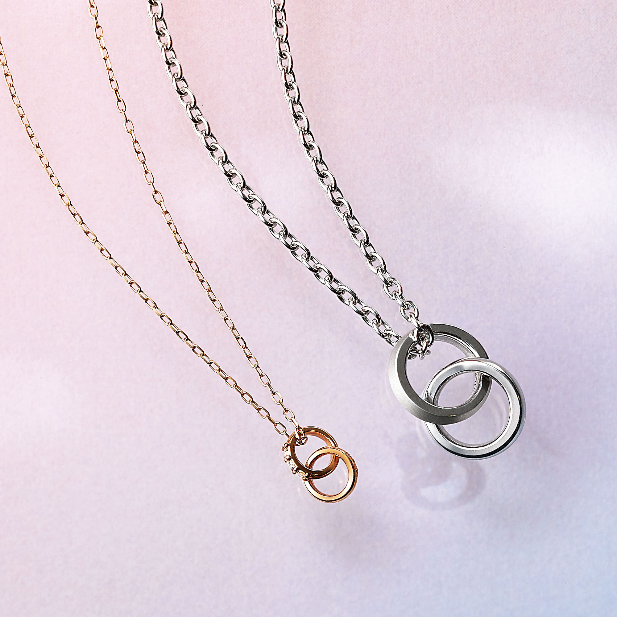 チェーンの吊り方を変えれば、2つの輪が縦に連なるデザイン、横にリンクするデザインの2WAYでお着けいただけます。