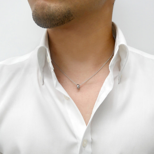 男性でも着けやすいベーシックなデザインで、ペアにおすすめです。(こちらはチェーンが太く50cmのメンズタイプです)