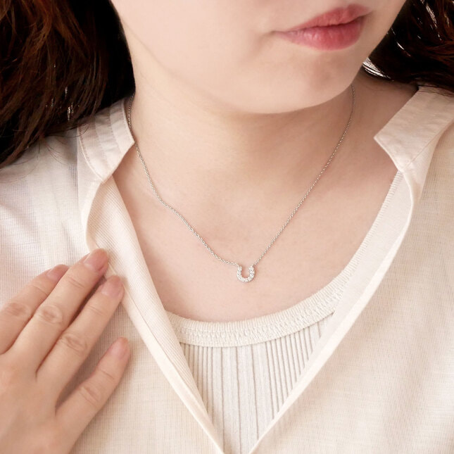『呼び込んだ幸せを逃さない』とも言われる、お守りジュエリーにもぴったりなホースシュー(馬蹄)モチーフのネックレス。