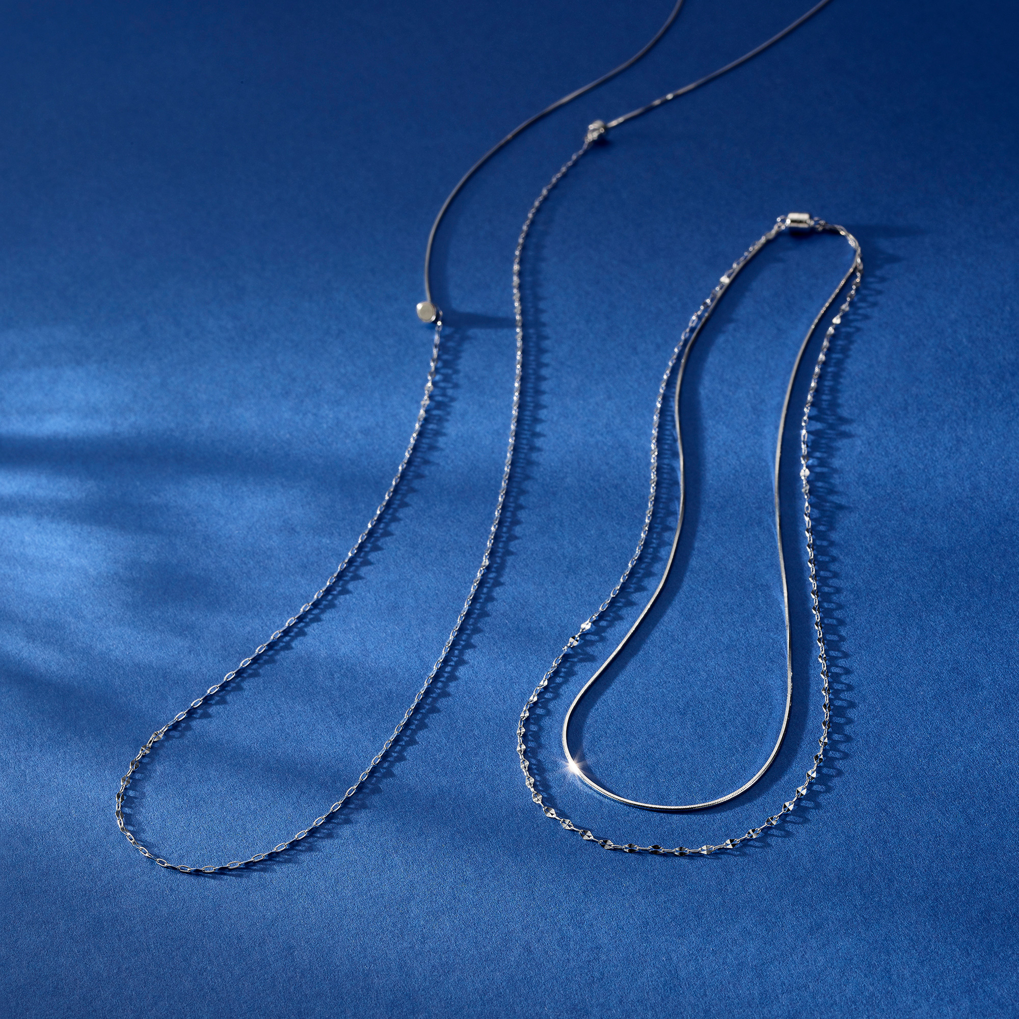 ロングとショートの長さを変えられる2WAYのチェーンネックレス。