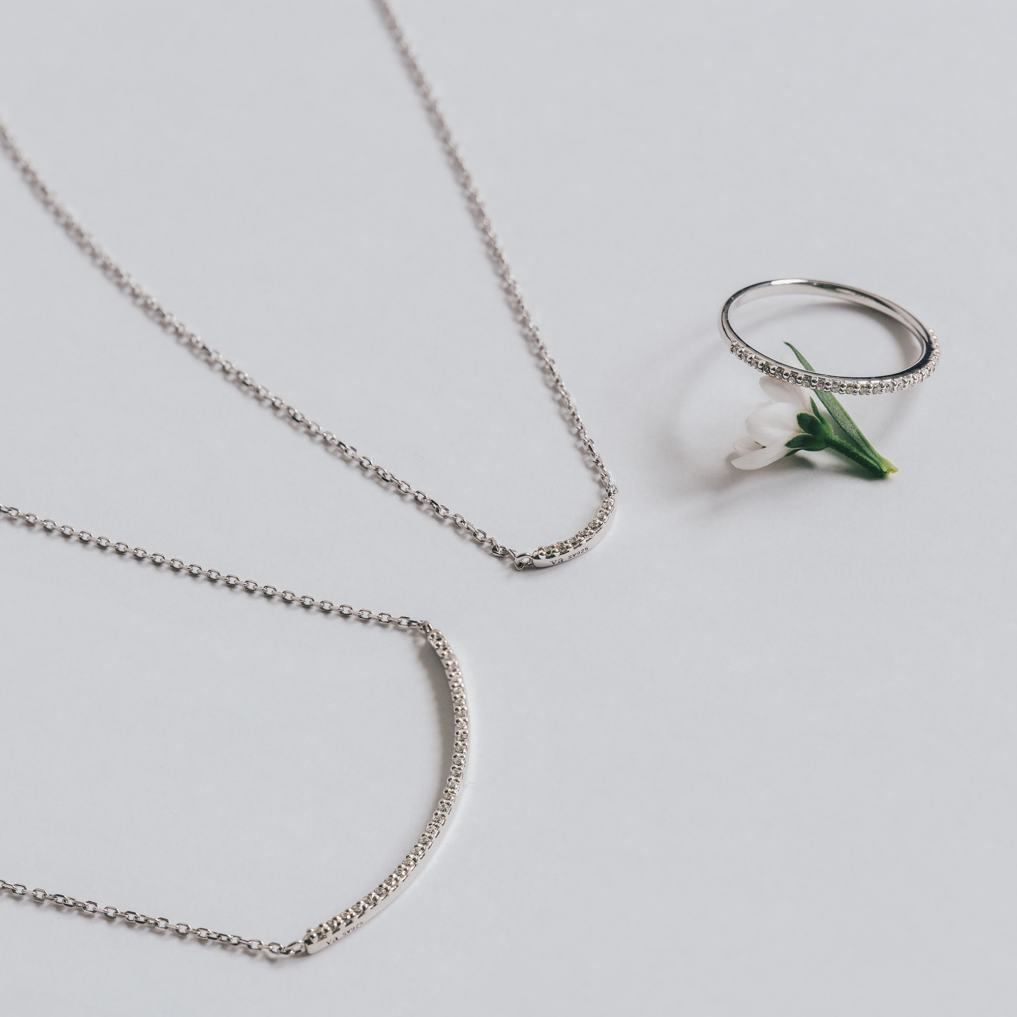 細いライン上にキュービックジルコニアをあしらい、きらめきをプラス。