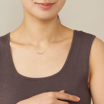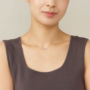 ライン上には一粒のキュービックジルコニアが輝き、デコルテできらめきを放ちます。