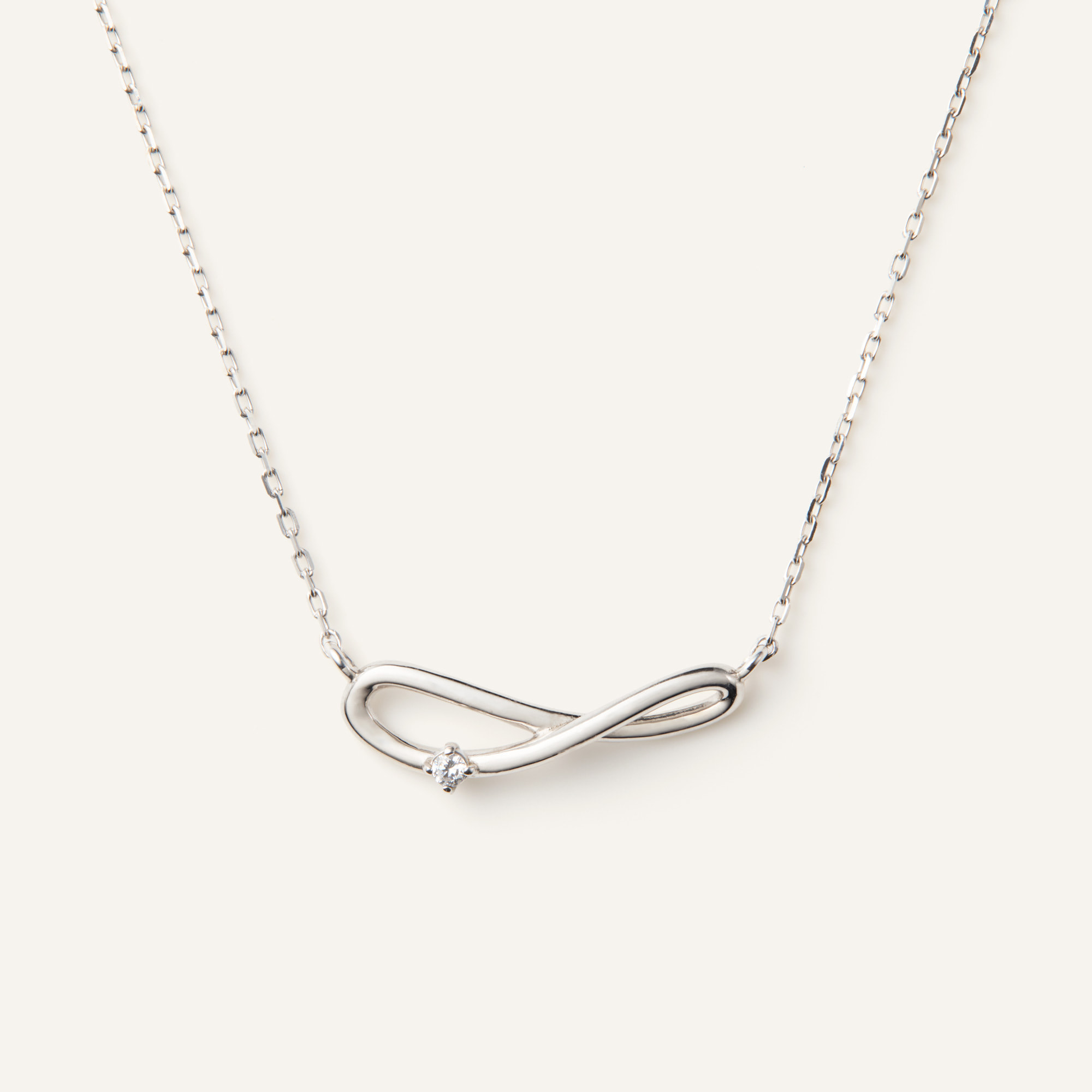 柔らかな曲線でインフィニティを描いたシルバーネックレス。