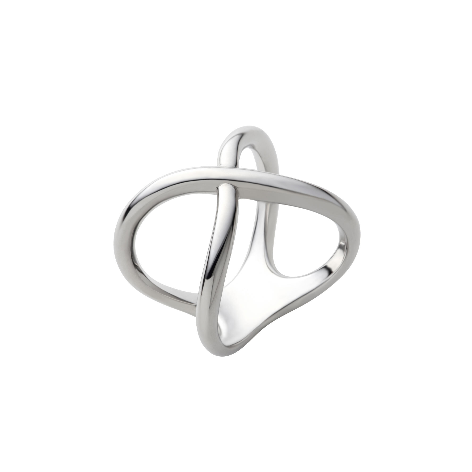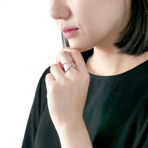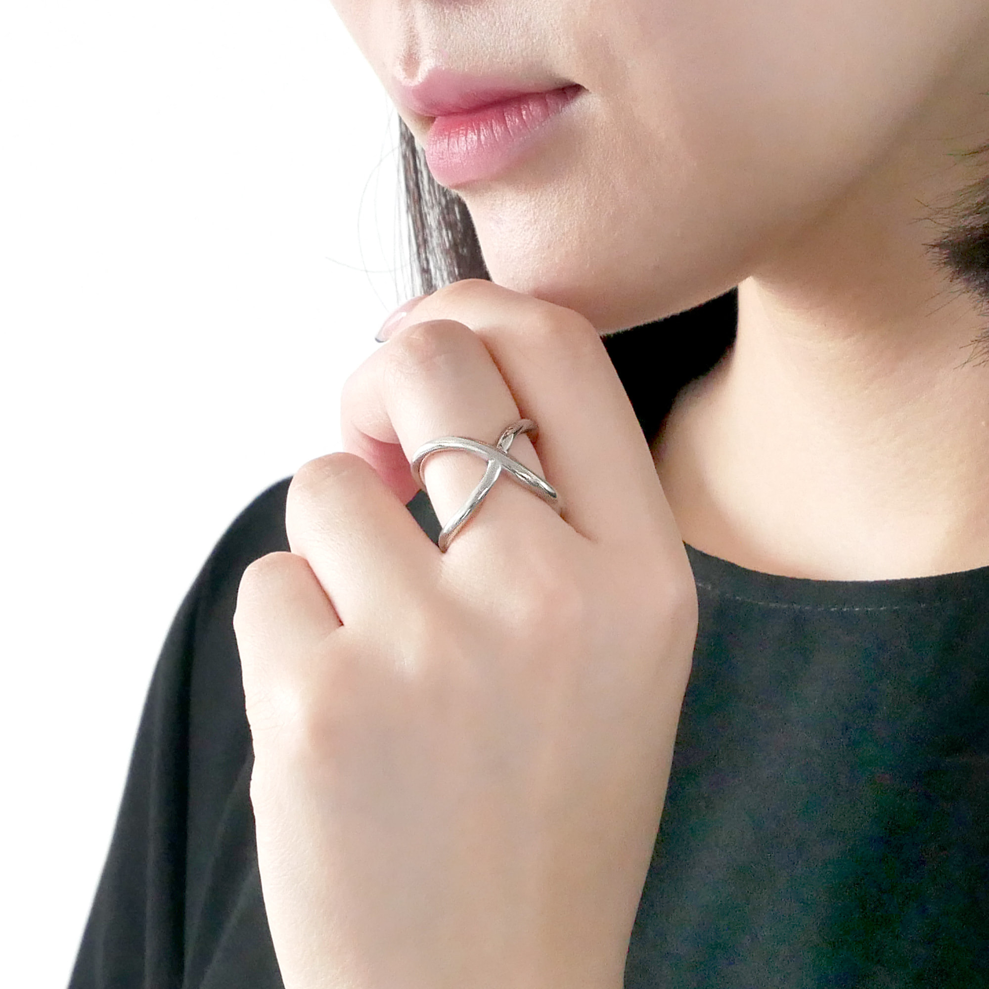 2本のラインがクロスすることにより生まれる美しいシェイプが特徴のリングは、手元をすっきりとした印象に。