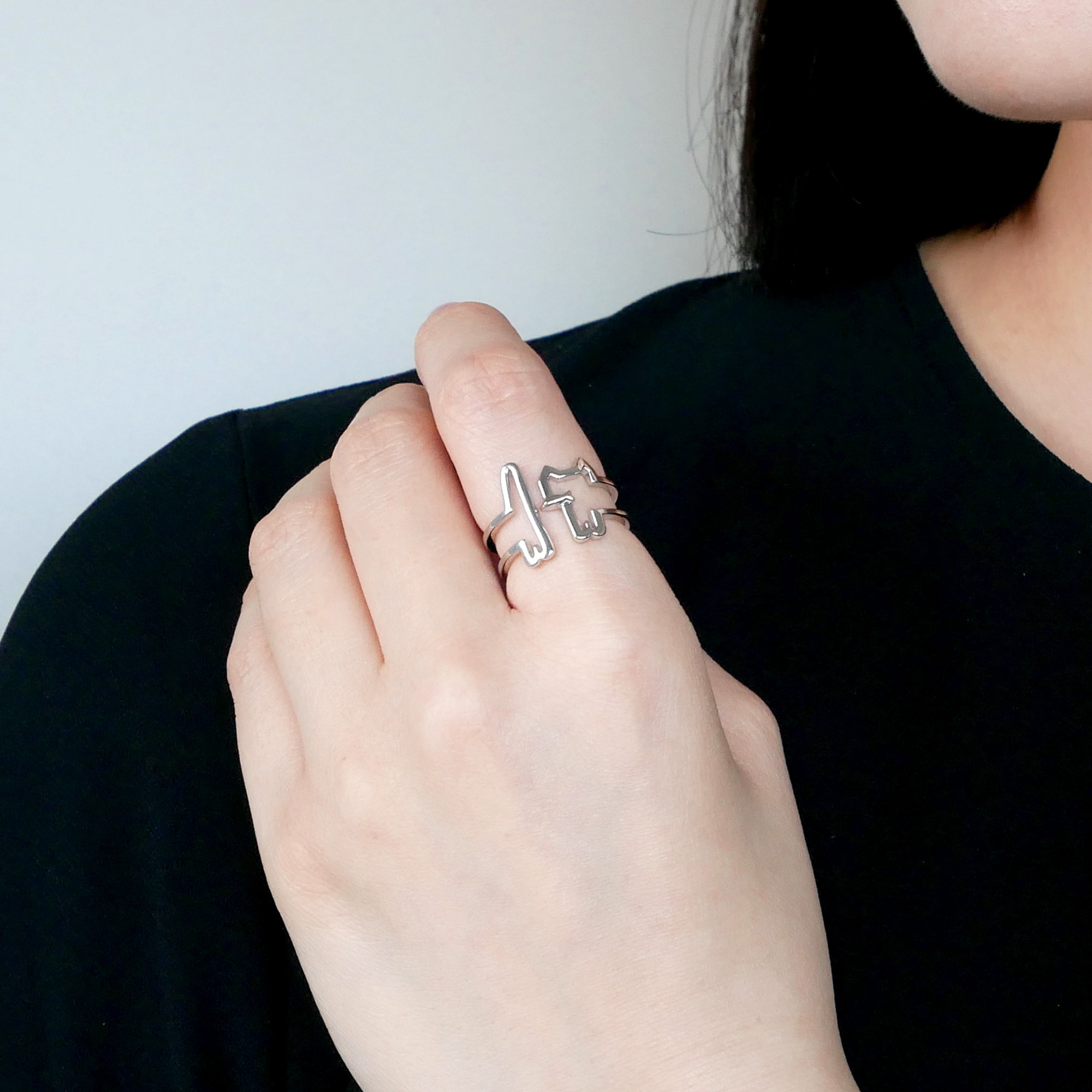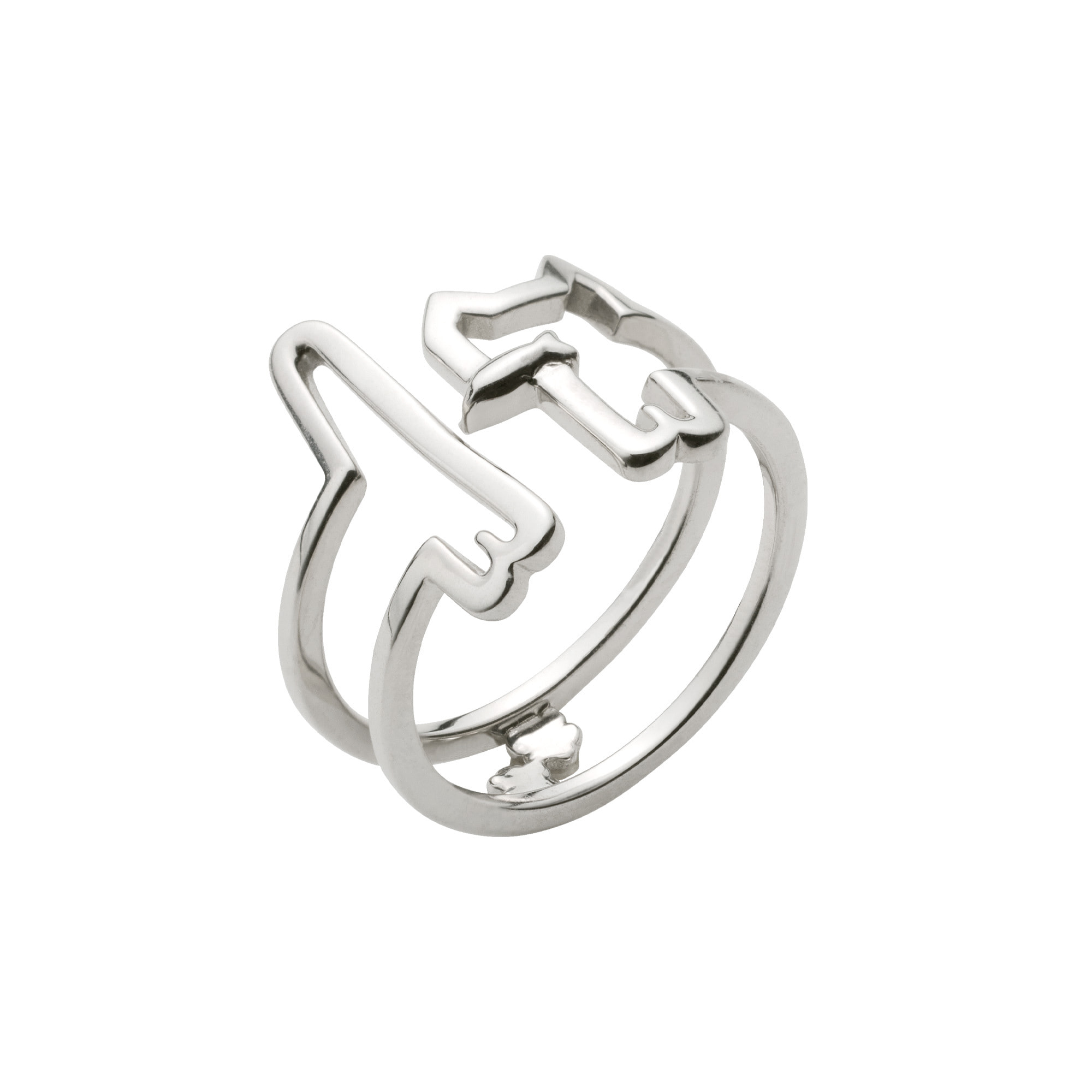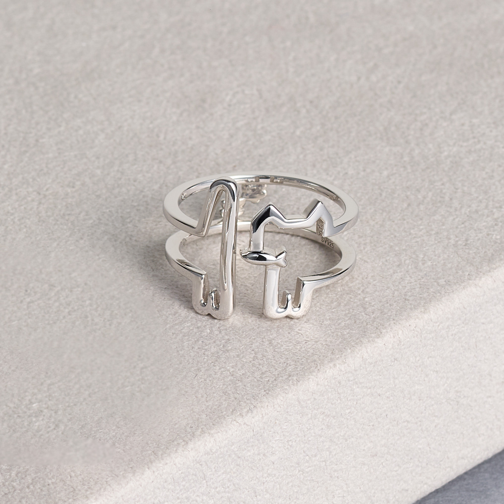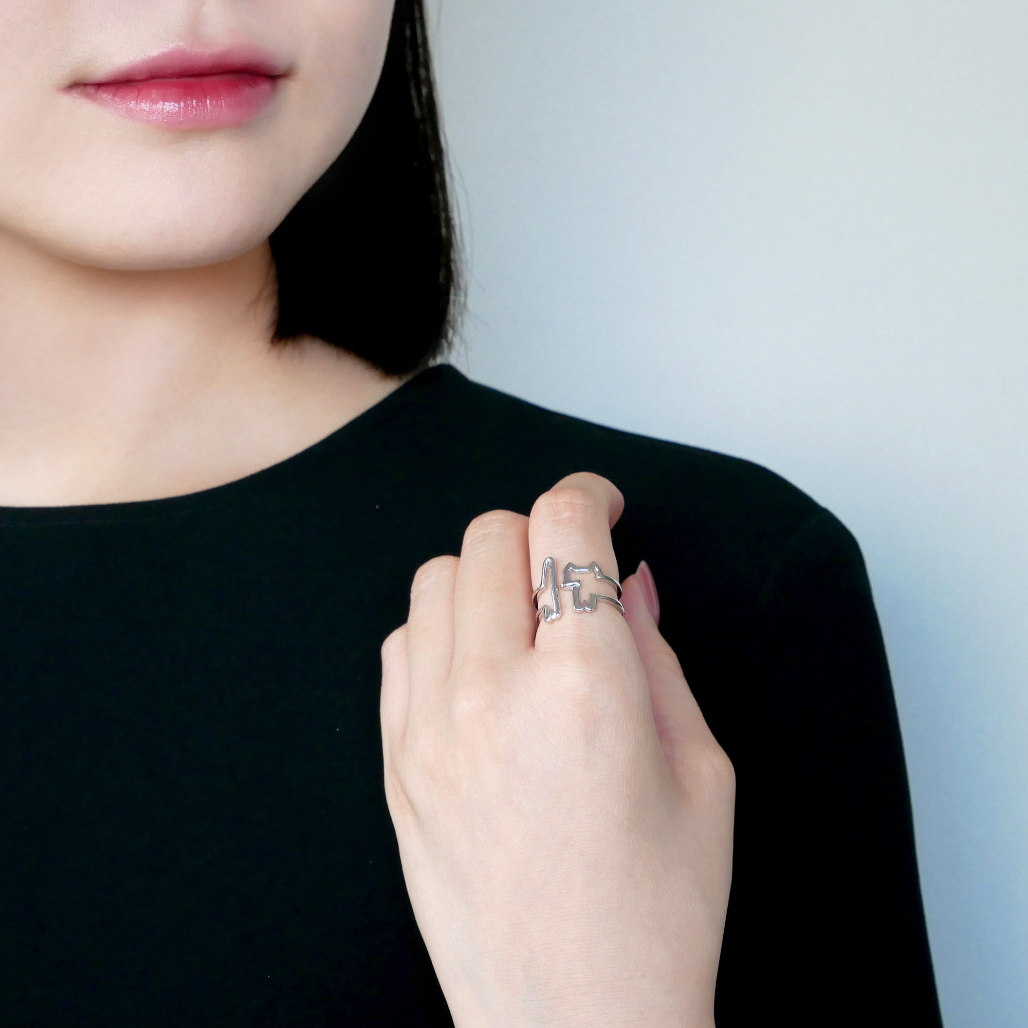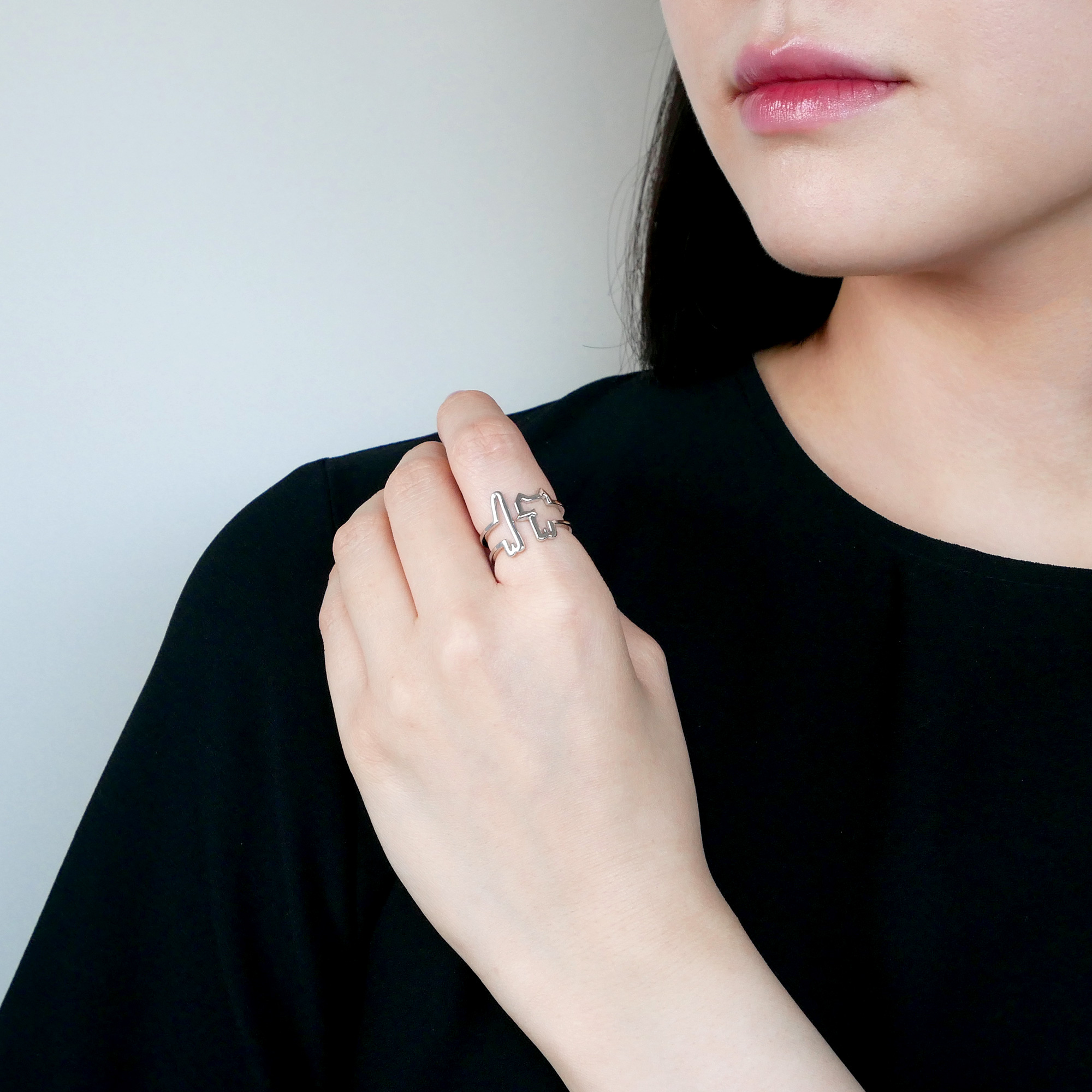 お魚をくわえた胴の長いねこがぐるっと1周、指に巻きついたようなコミカルなデザインが印象的です。