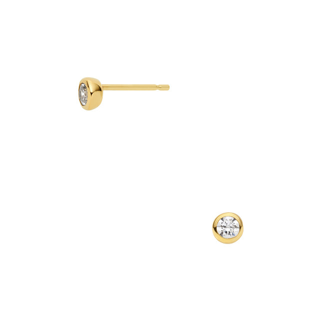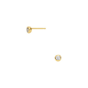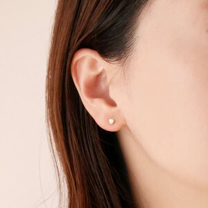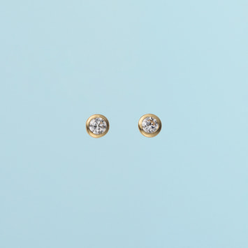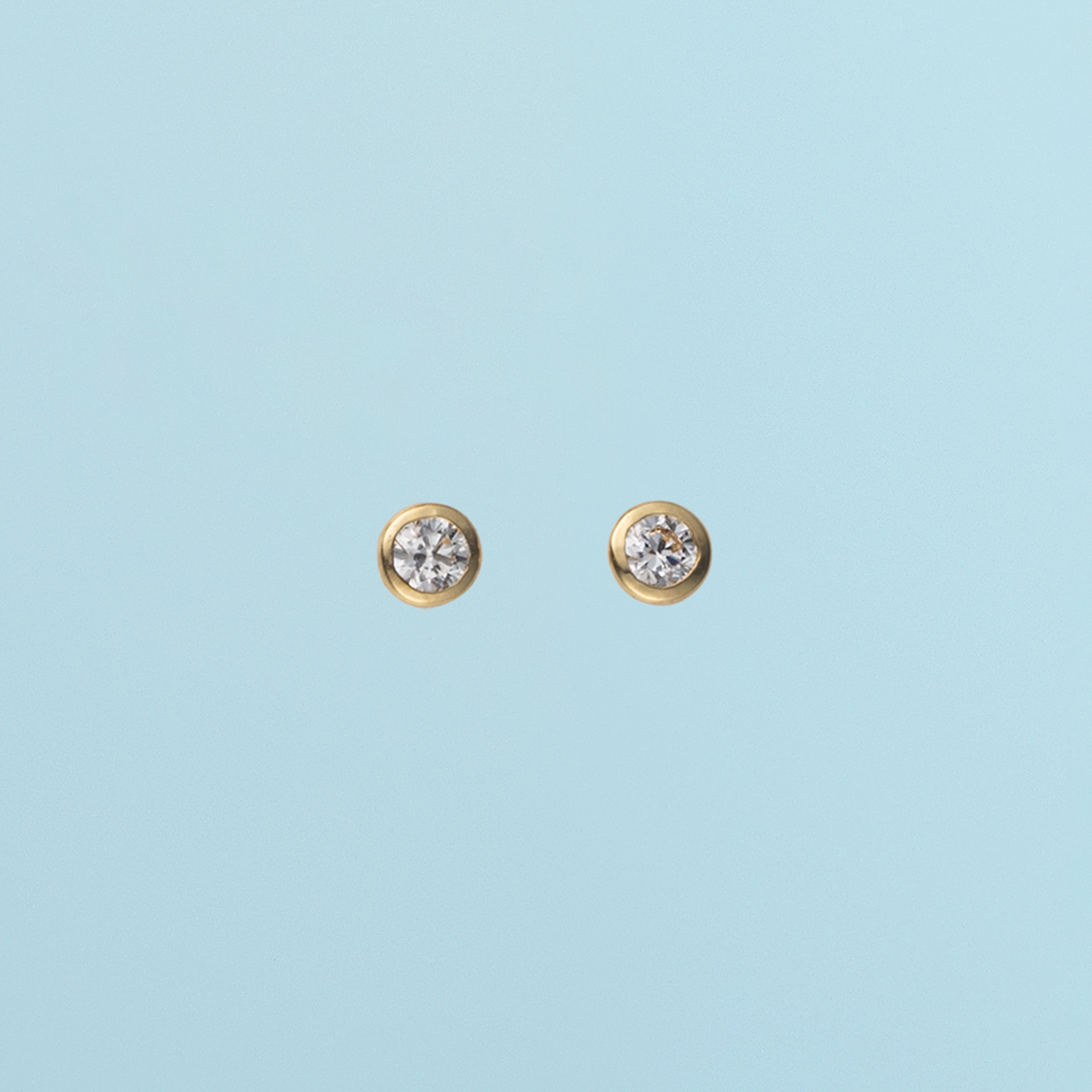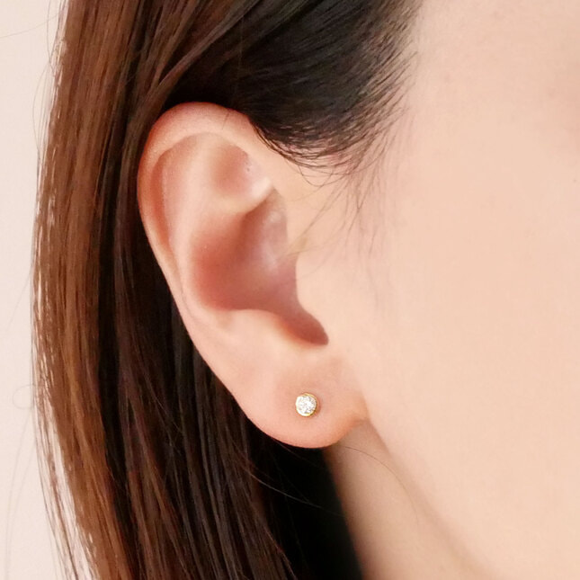 一粒のキュービックジルコニアをつややかなフレームで包んだベーシックなピアス。