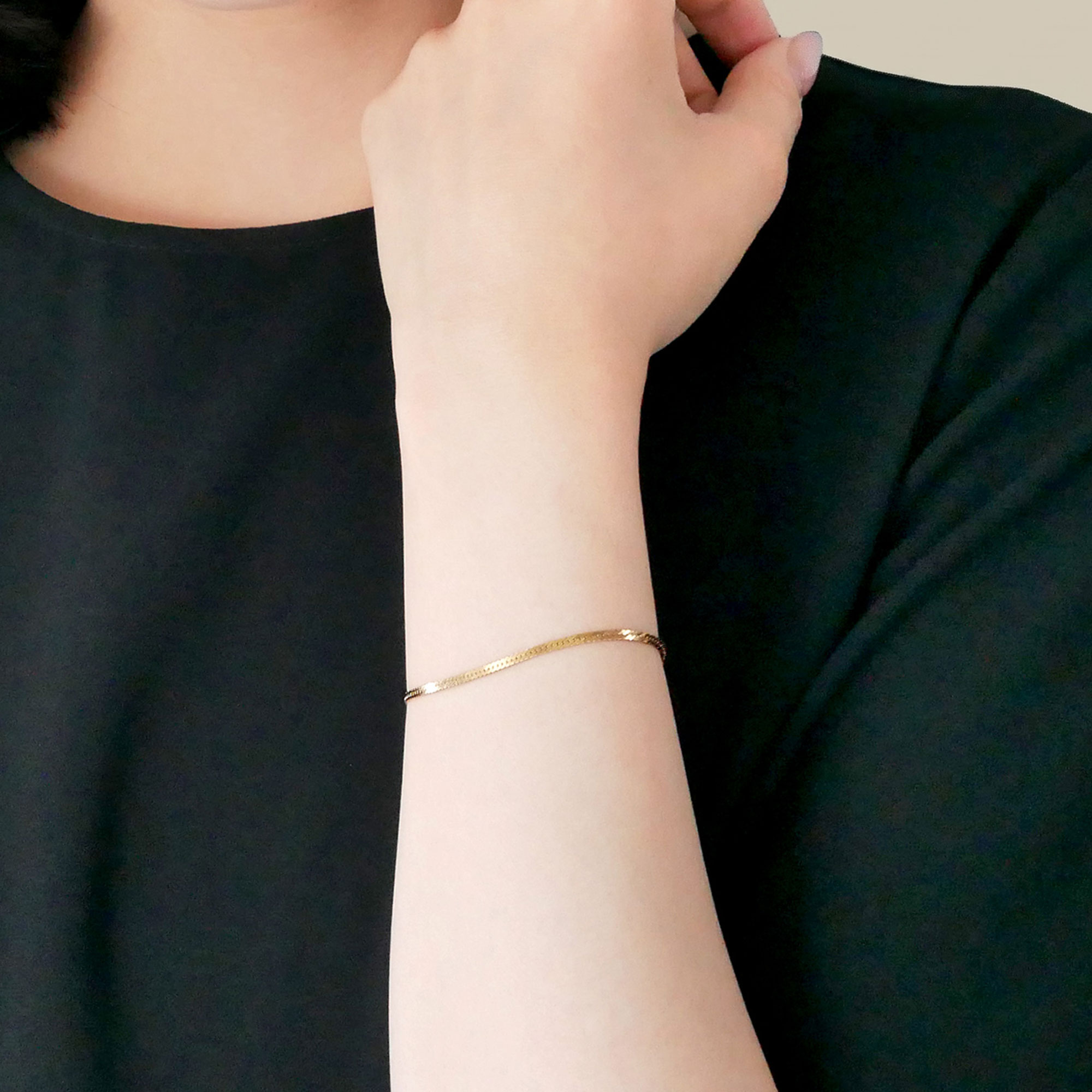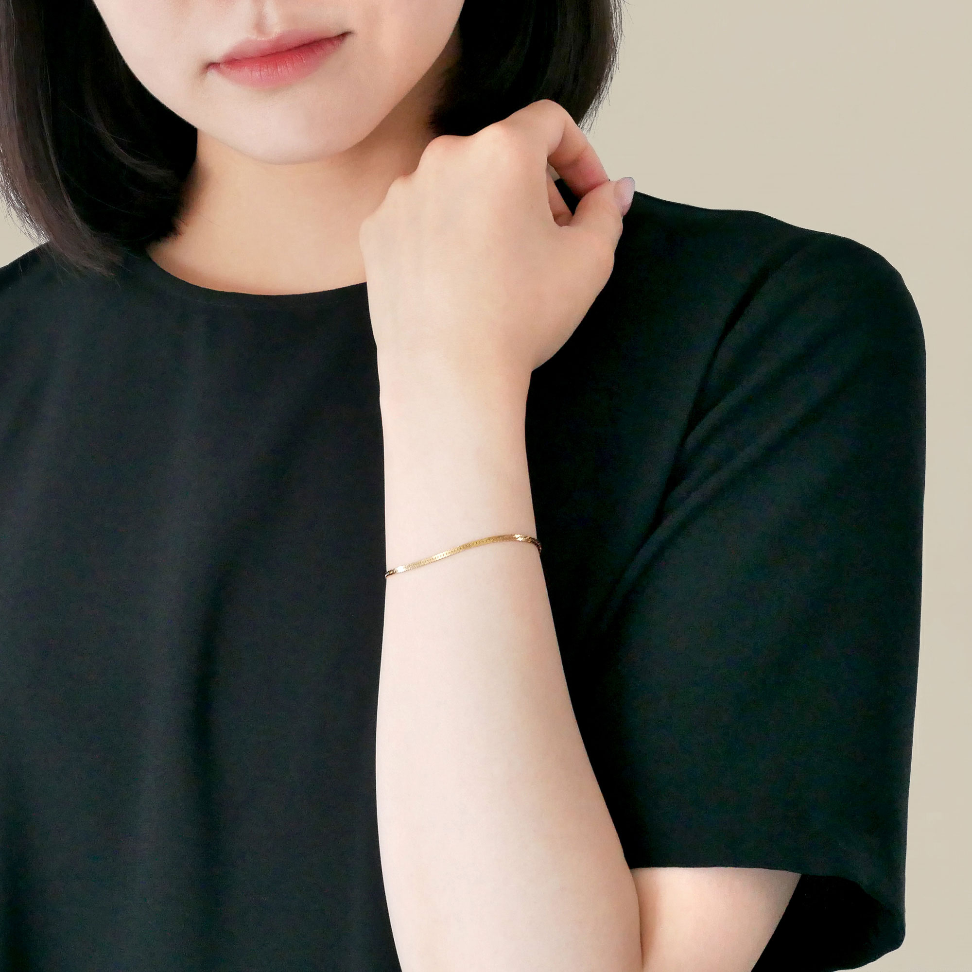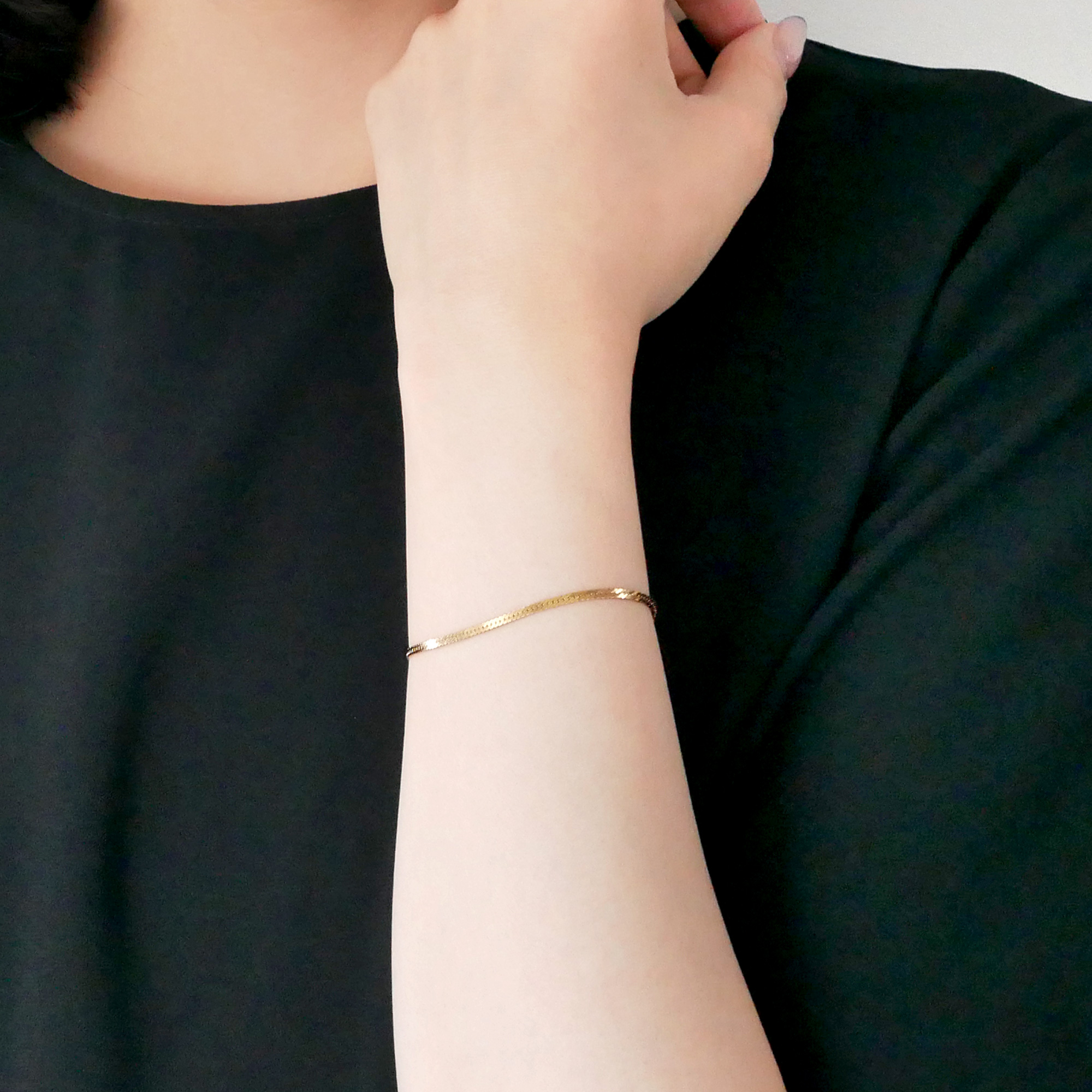 ヘリンボーンチェーンが煌めくブレスレット。