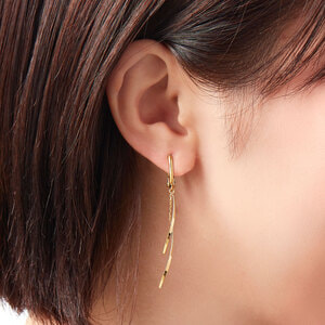 ゆるやかにひねられた2つのラインが揺れるイヤリング。