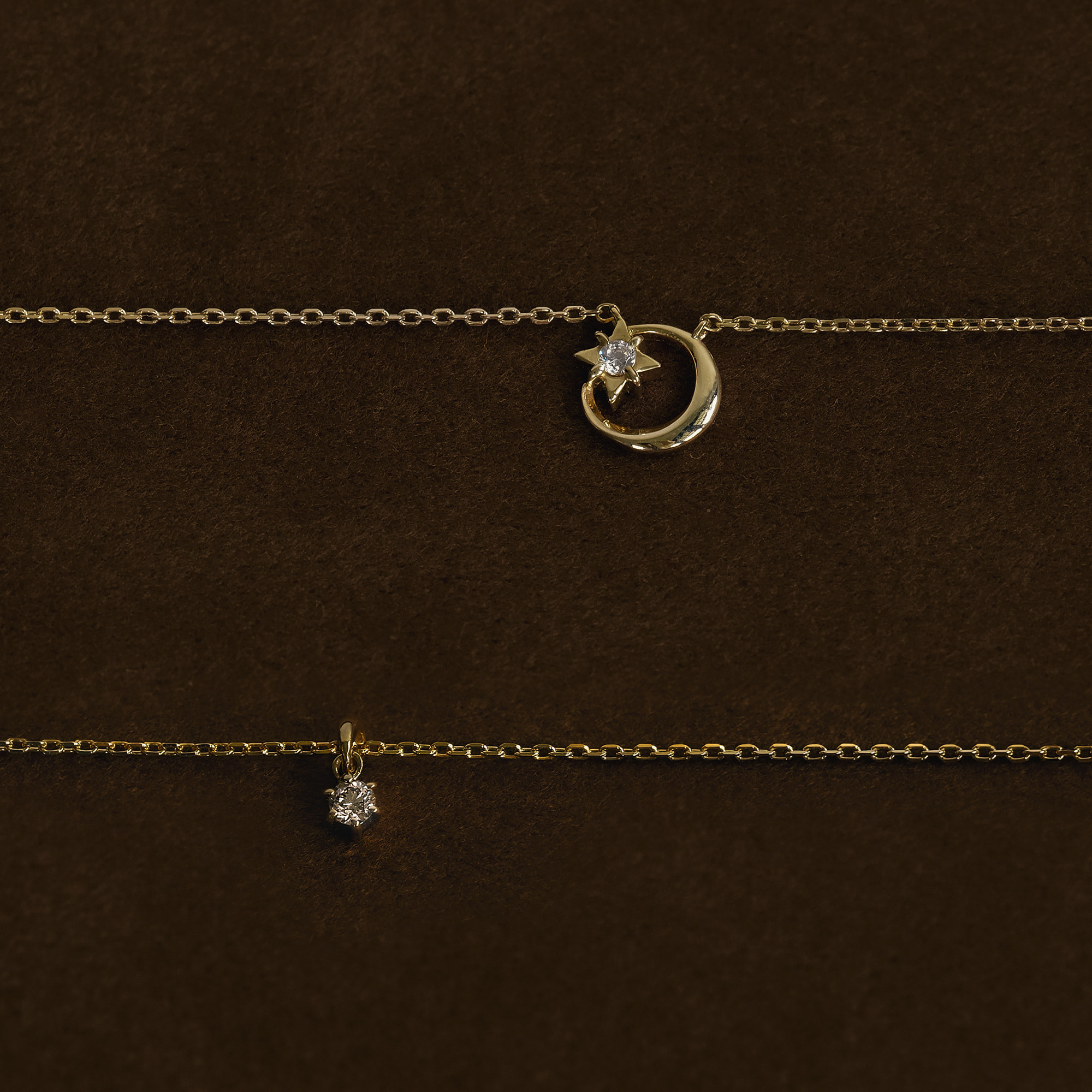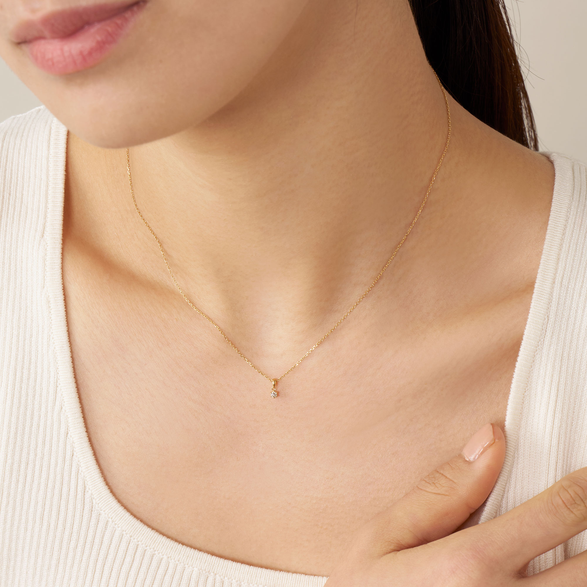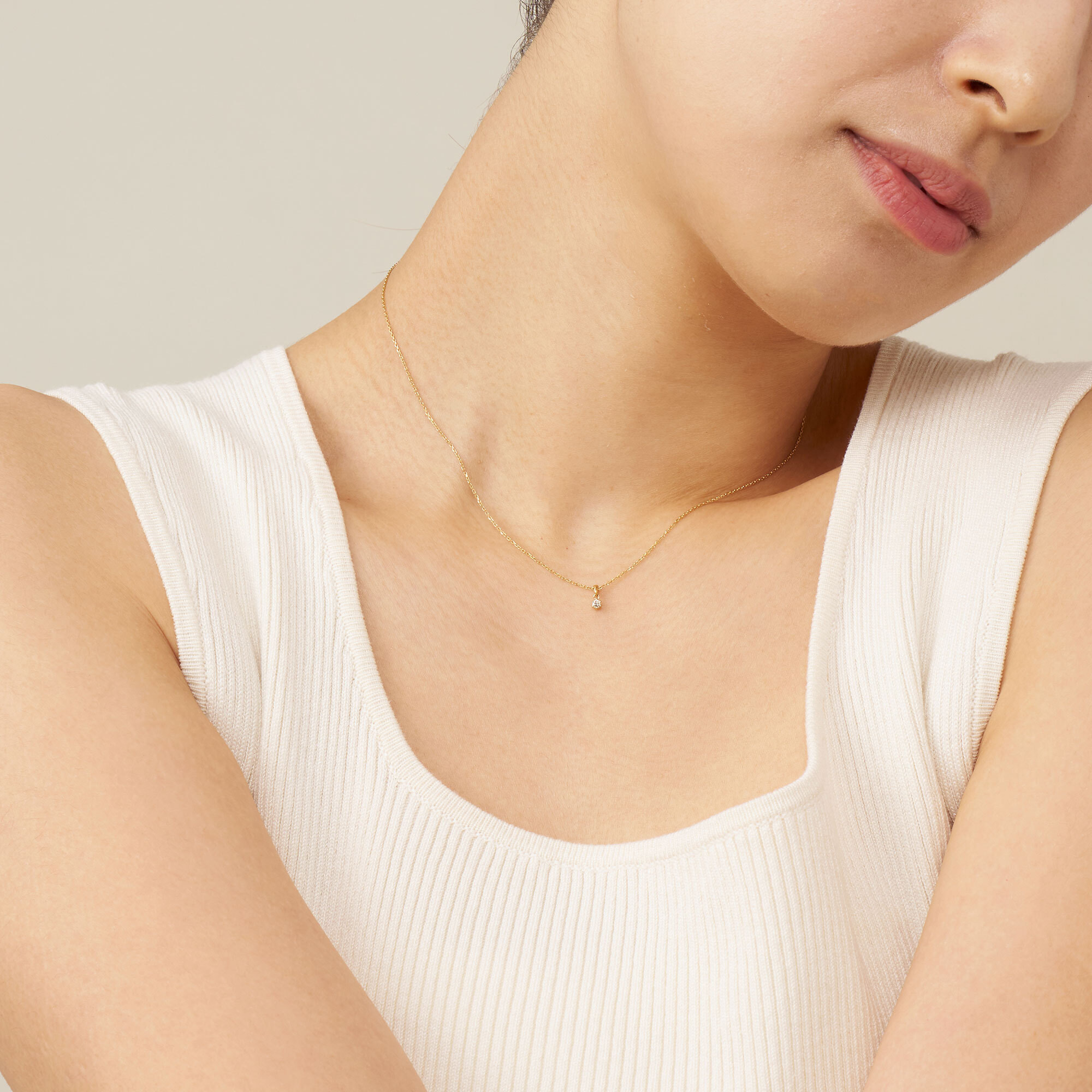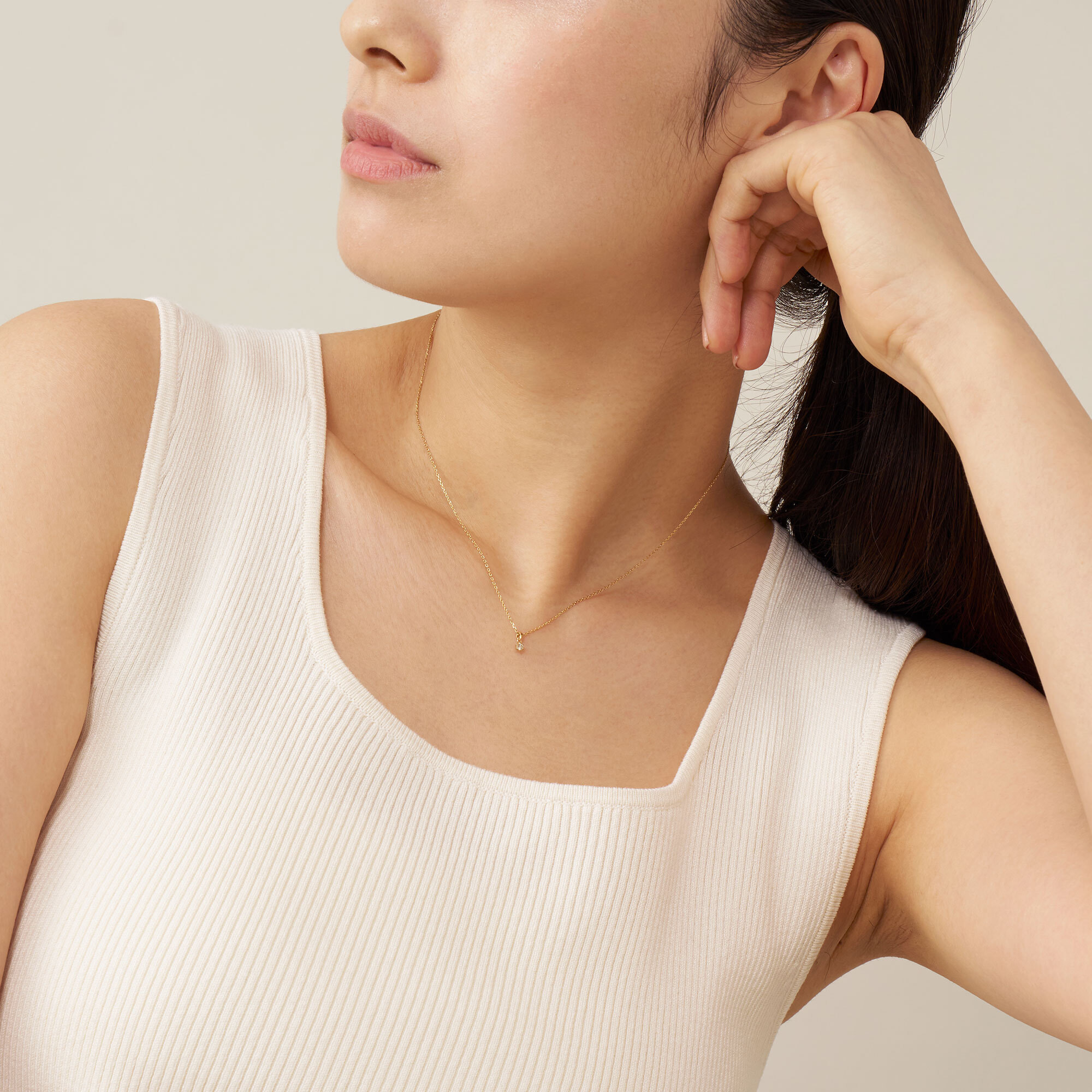 肩の力を抜いて着けられる1 粒ダイヤモンドのネックレスは、ファーストジュエリーや大切な人へのギフトにもぴったりです。