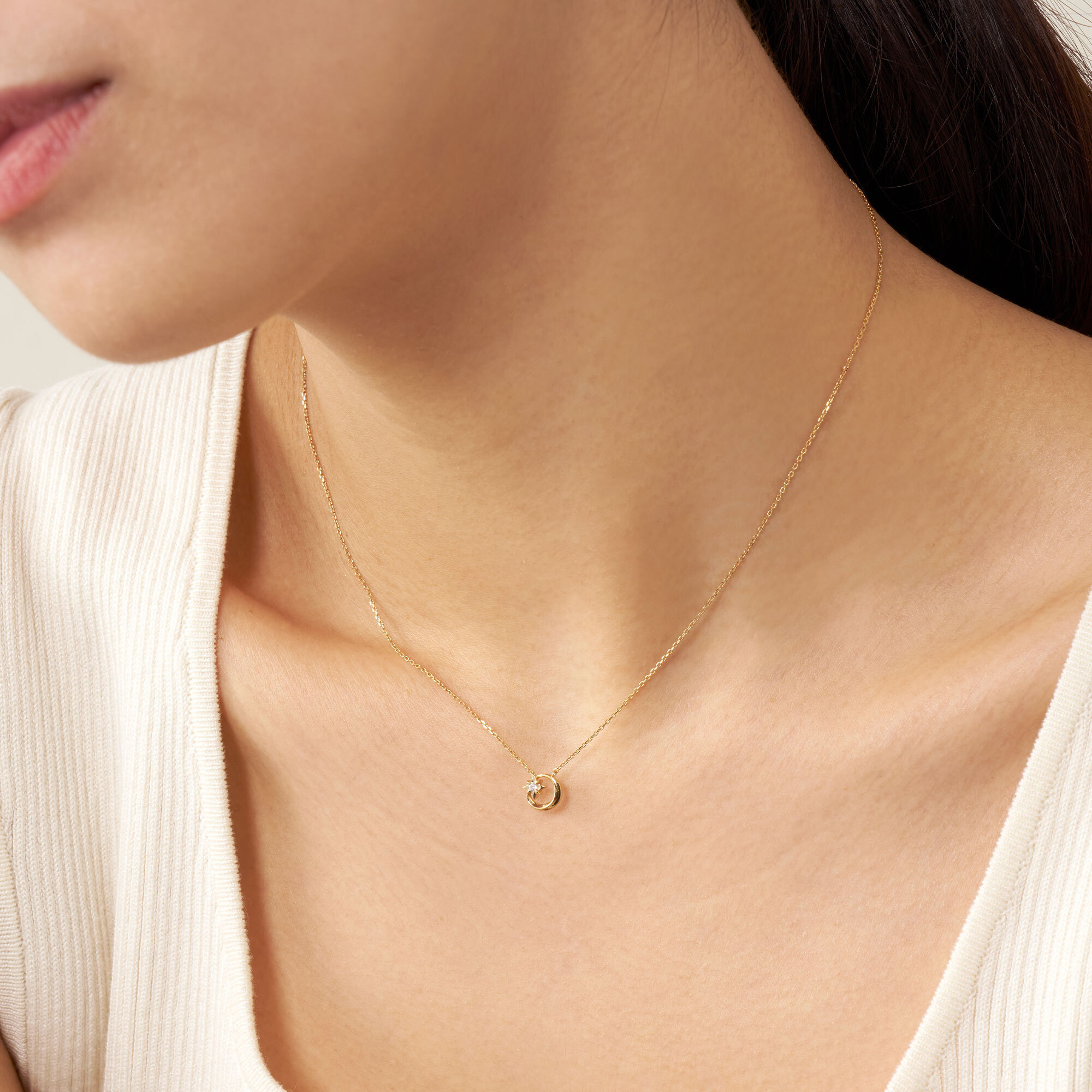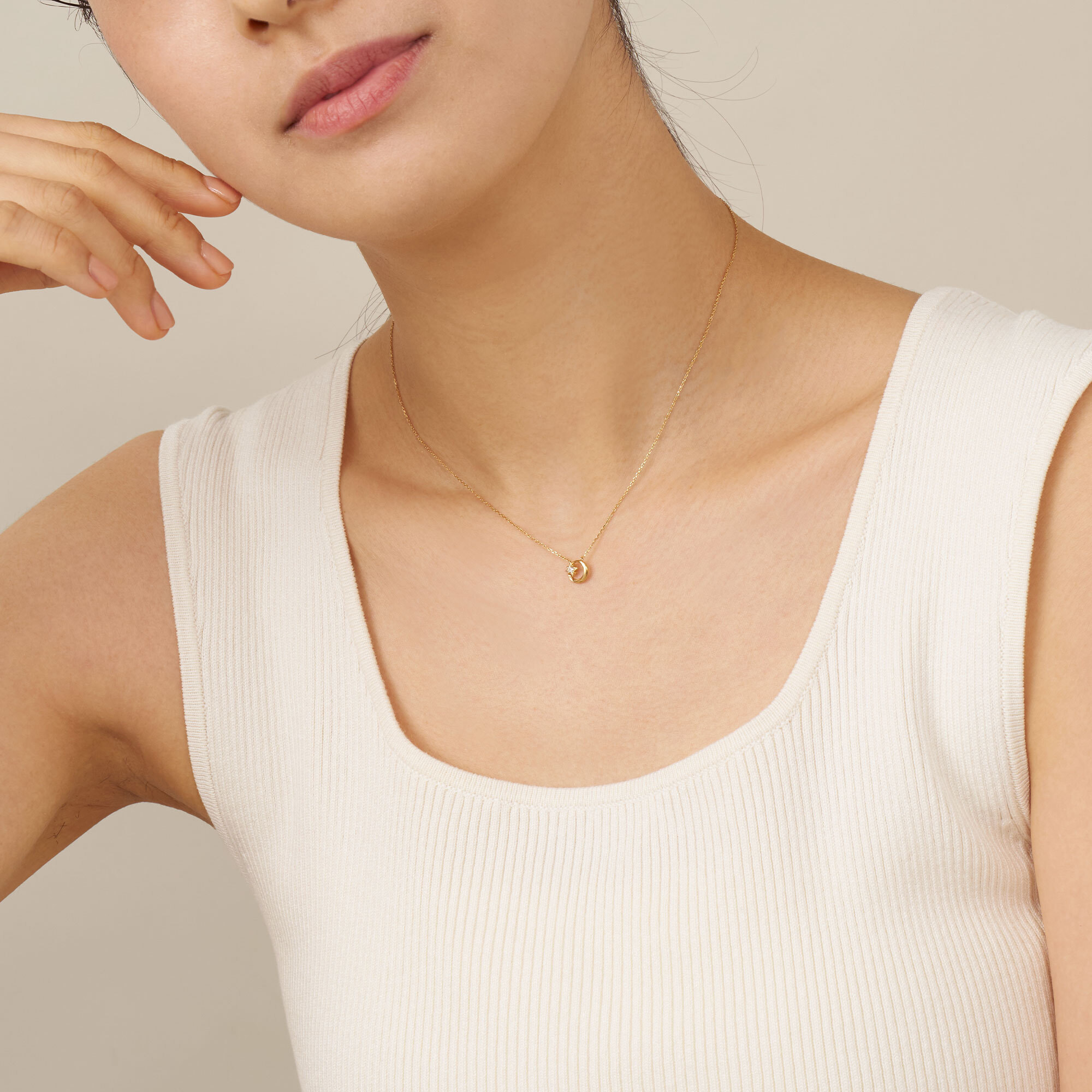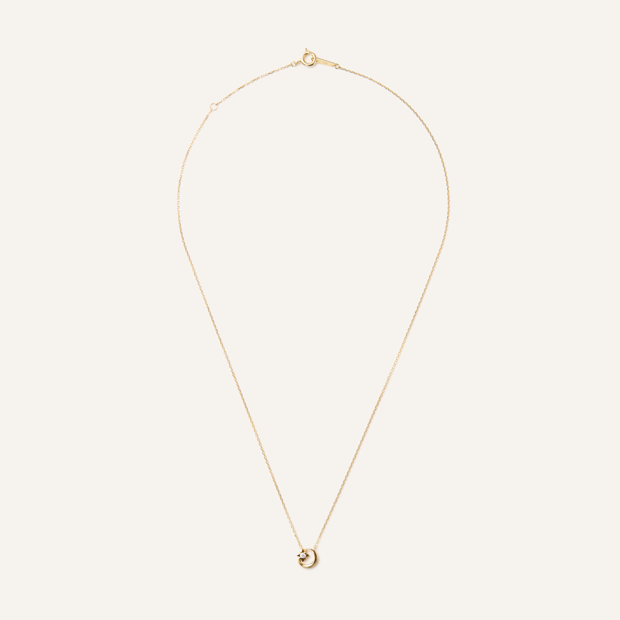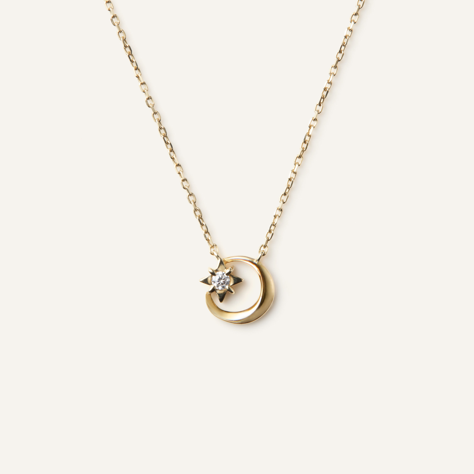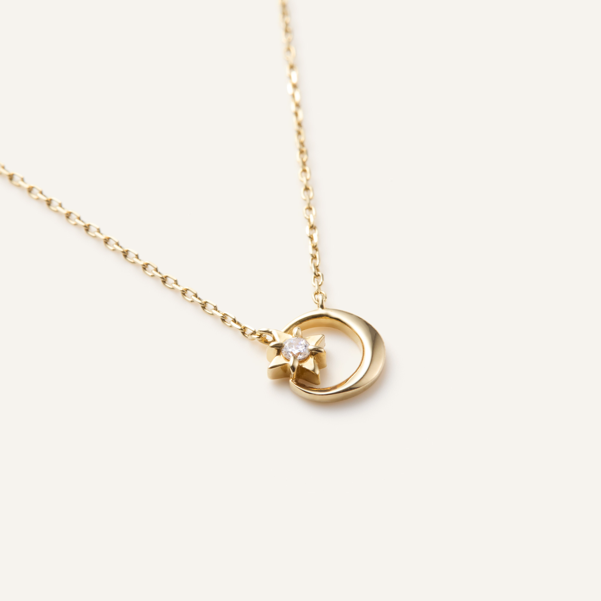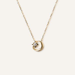 いつものコーディネートに取り入れやすい、ロマンティックな三日月と星のネックレス。