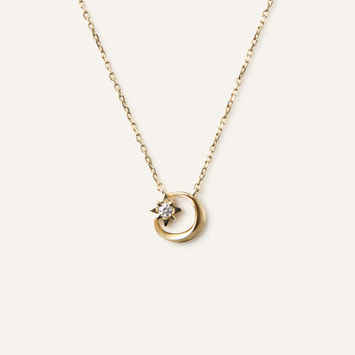 夜空で輝く三日月と星をデザインしたネックレス。