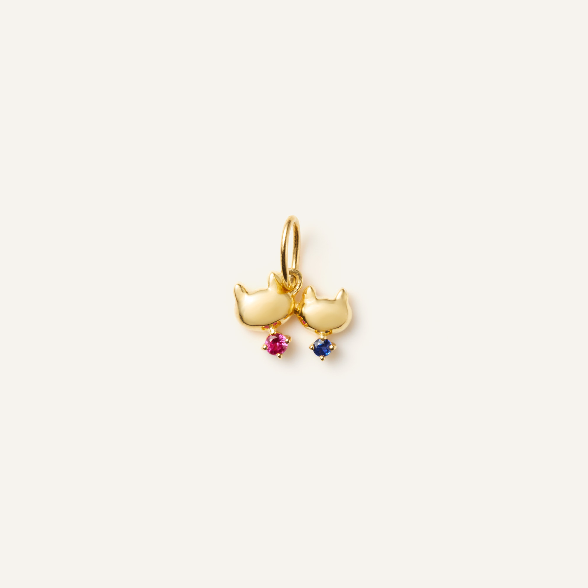 お母さん猫にはルビー、子猫にはサファイアをセッティング。