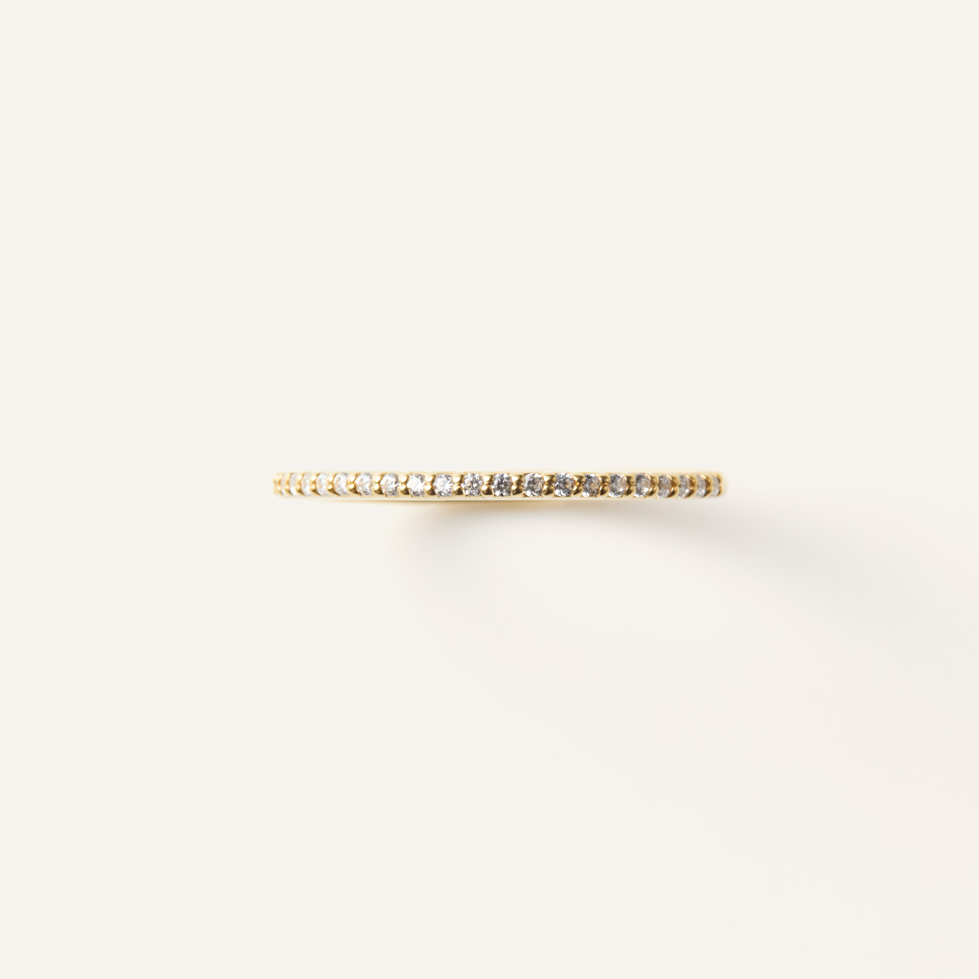 小さな爪で整然と留められた石が連なるデザインは、シンプルながらも大人っぽい印象に。