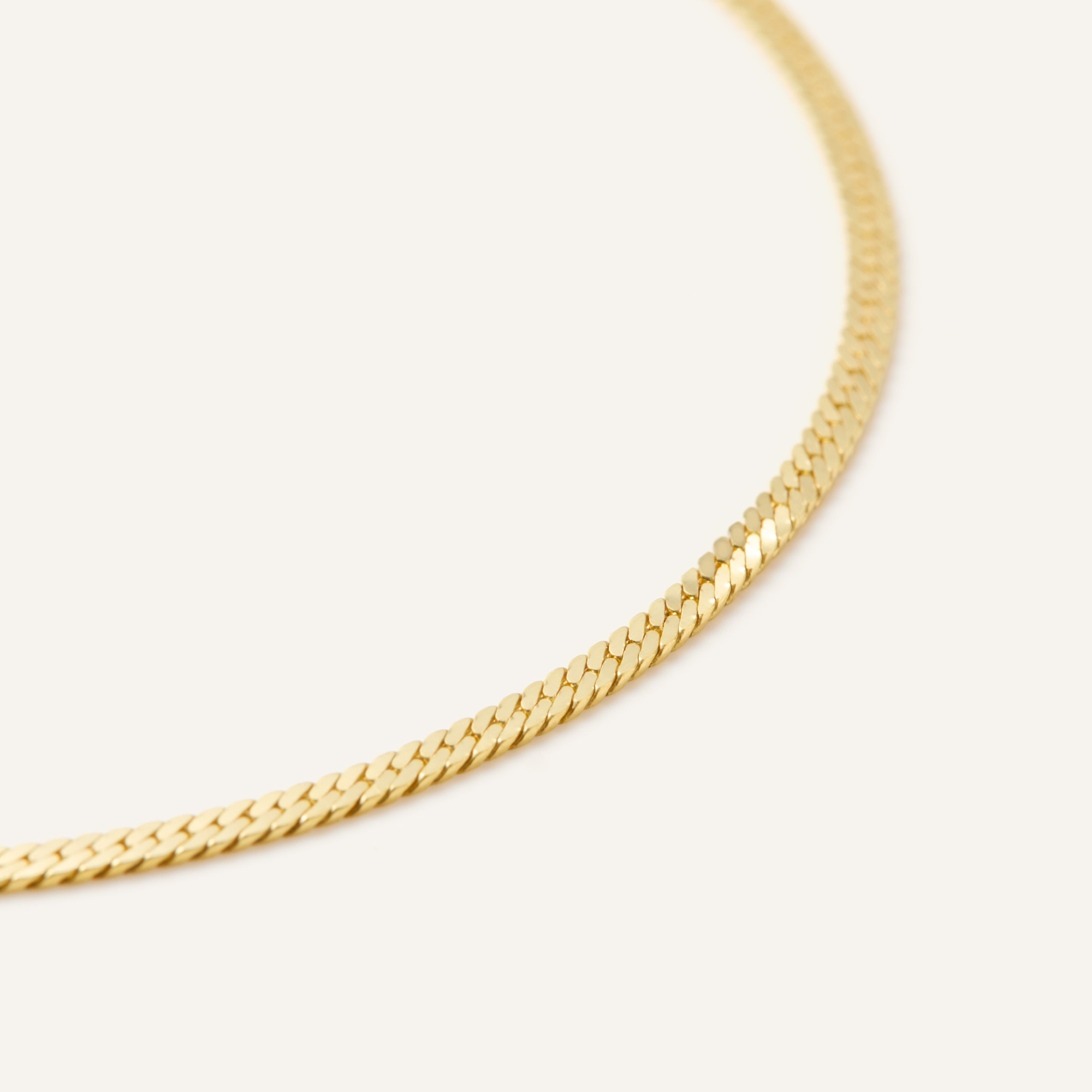 ヘリンボーンチェーンは平らなコマの連なりが特徴のチェーン。