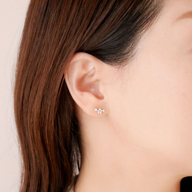 柔らかく輝くピンクゴールドとストーンのきらめきのコントラストが美しく、横顔をぱっと明るく見せてくれそう。
