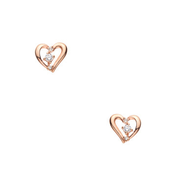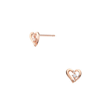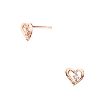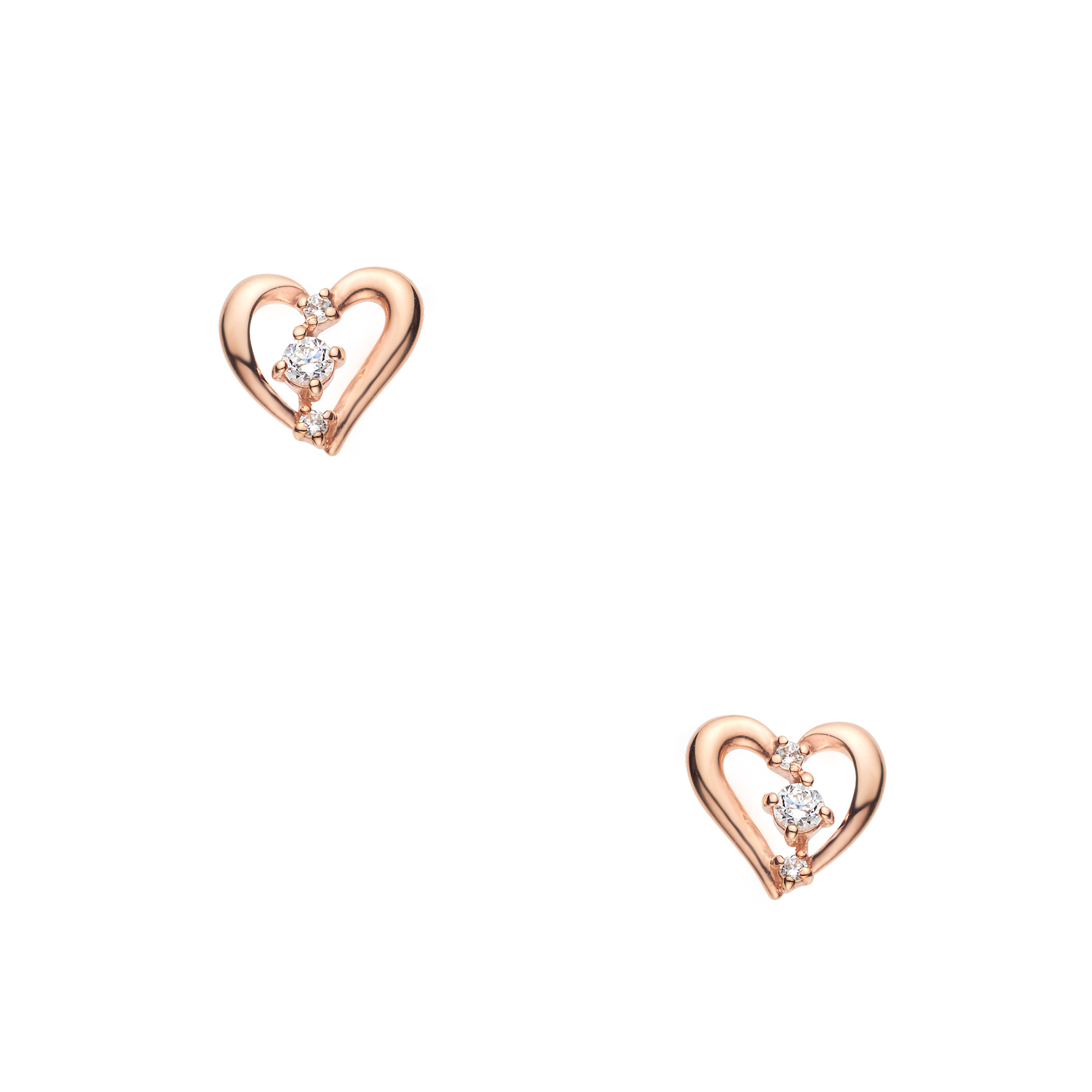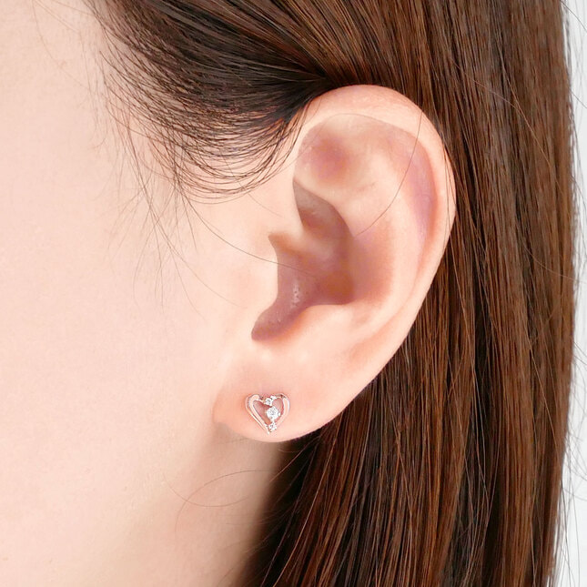 流れるような柔らかなラインで描いたオープンハートの中に3石のキュービックジルコニアをあしらったピアス。