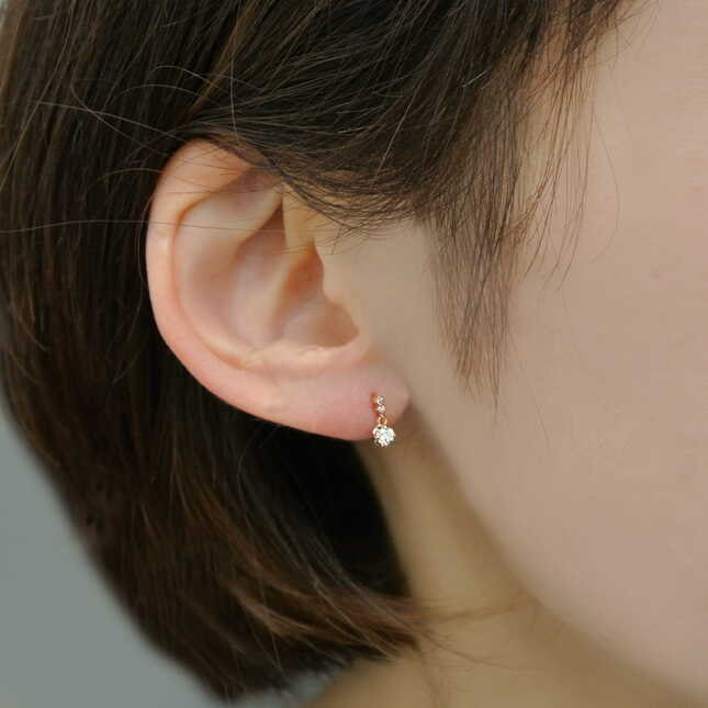 キュービックジルコニアのチャームが着ける人の動きに合わせて揺れ、きらきらと繊細な光を放ちます。