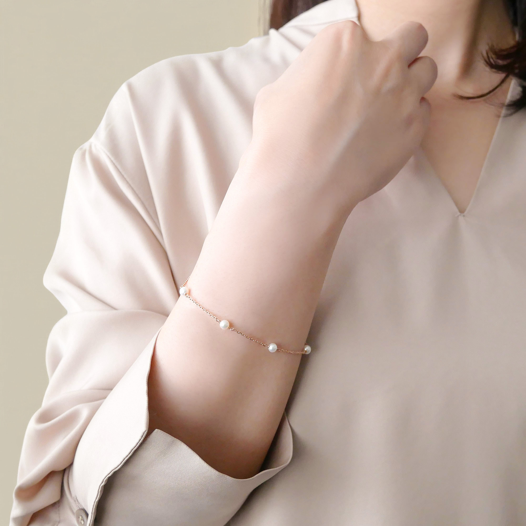 淡水パールのやわらかい輝きが美しいステーションブレスレット。