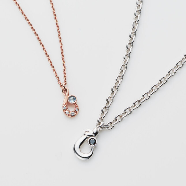 幸運を釣り上げる釣り針モチーフのペアネックレス。