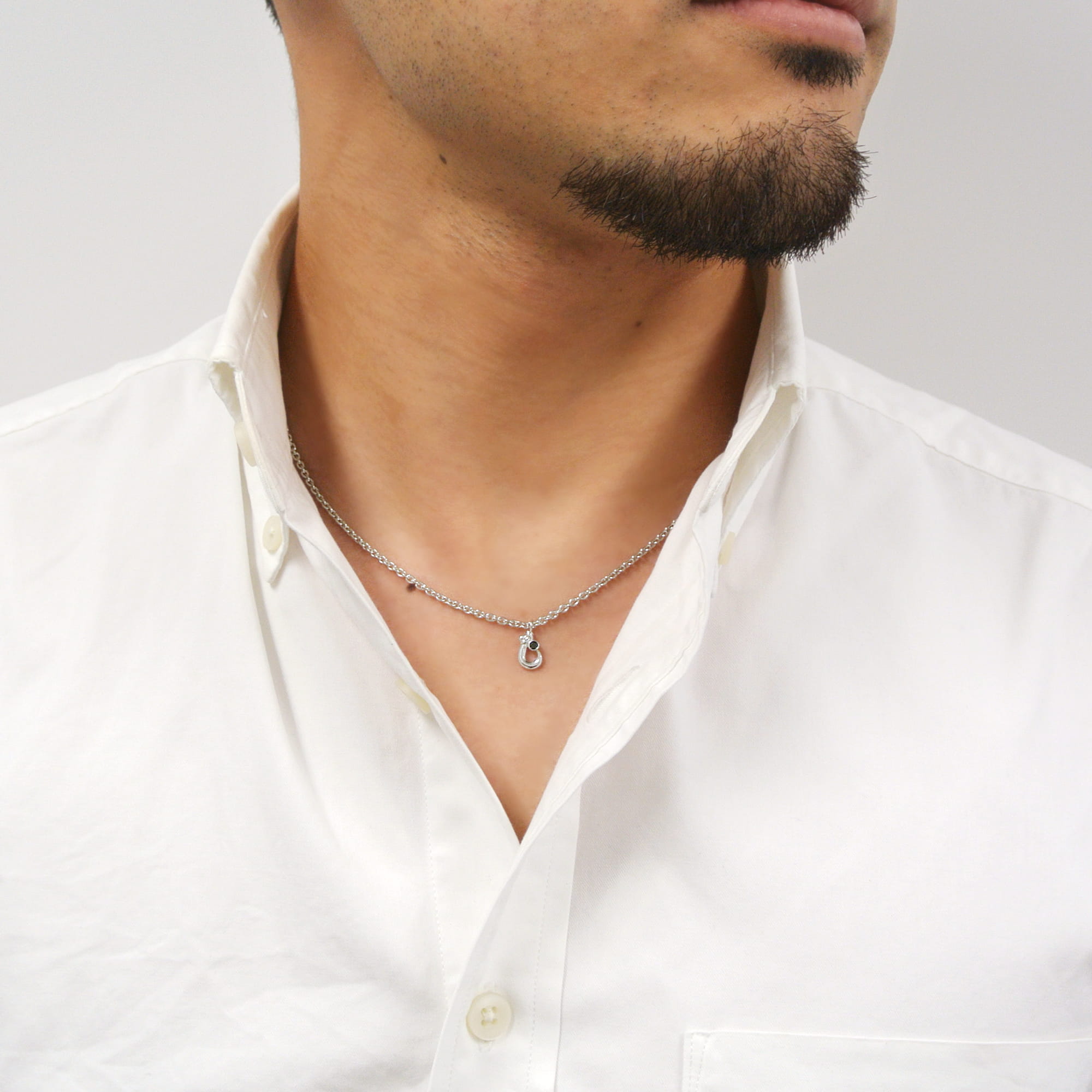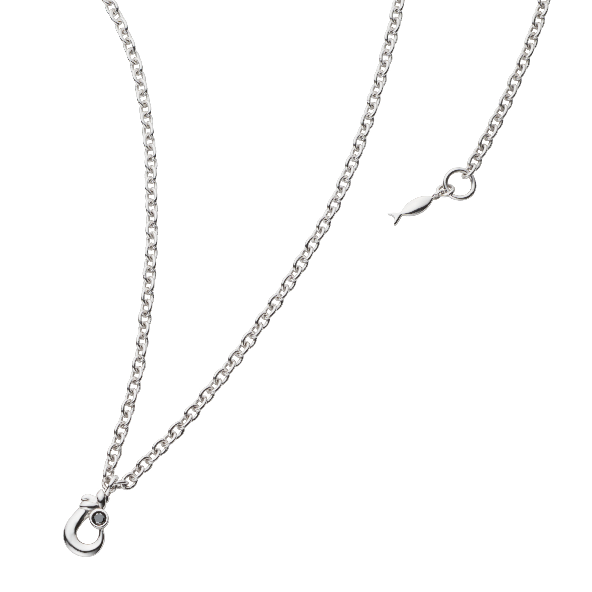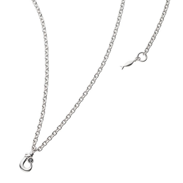 テールエンドには魚のチャームがついていて、細部にまでこだわりを感じさせるネックレスです。