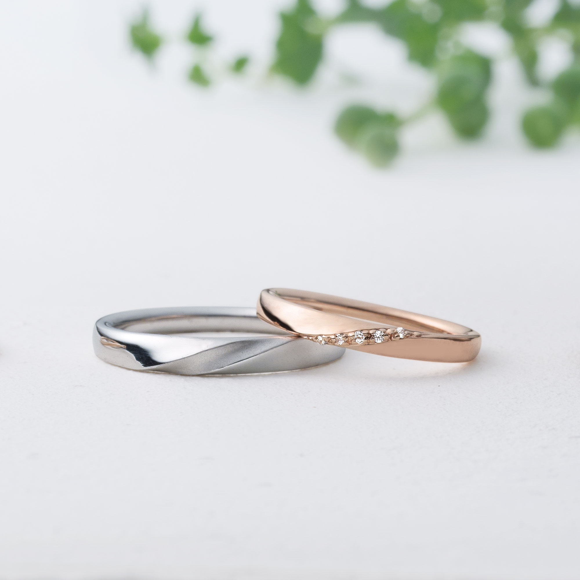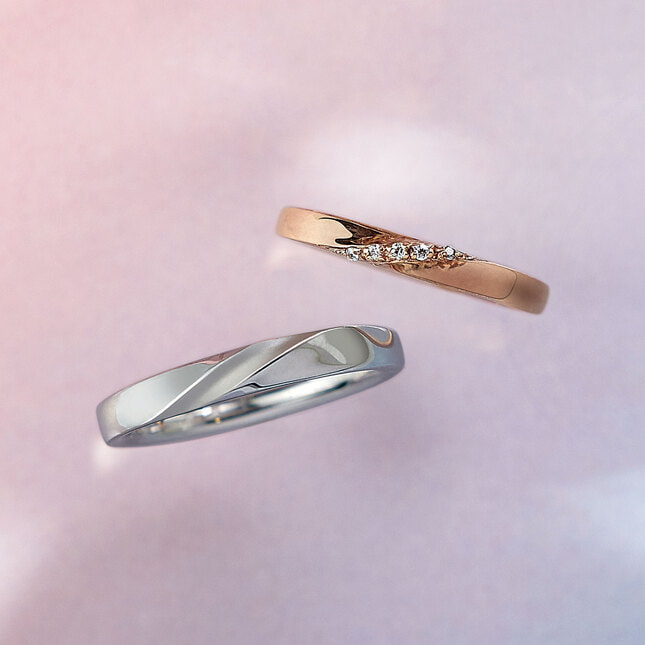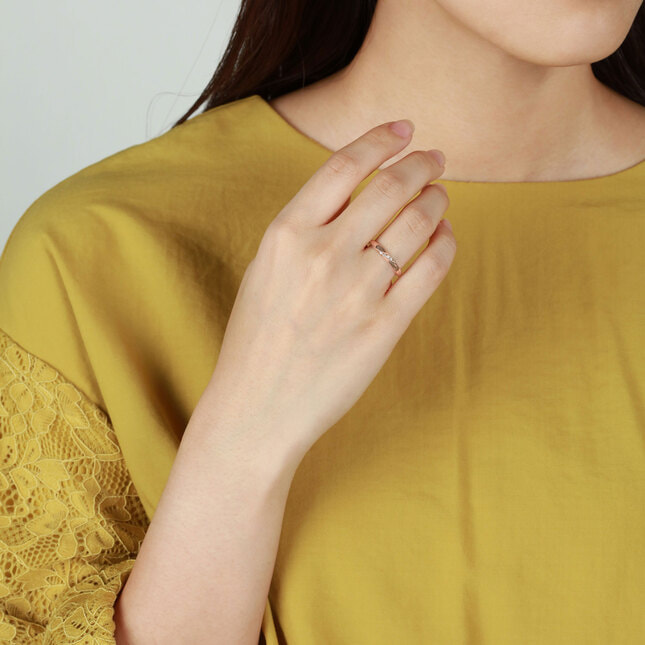 ストレートなシルエットなのでエタニティリングと重ねてボリュームアップするのもおすすめ。