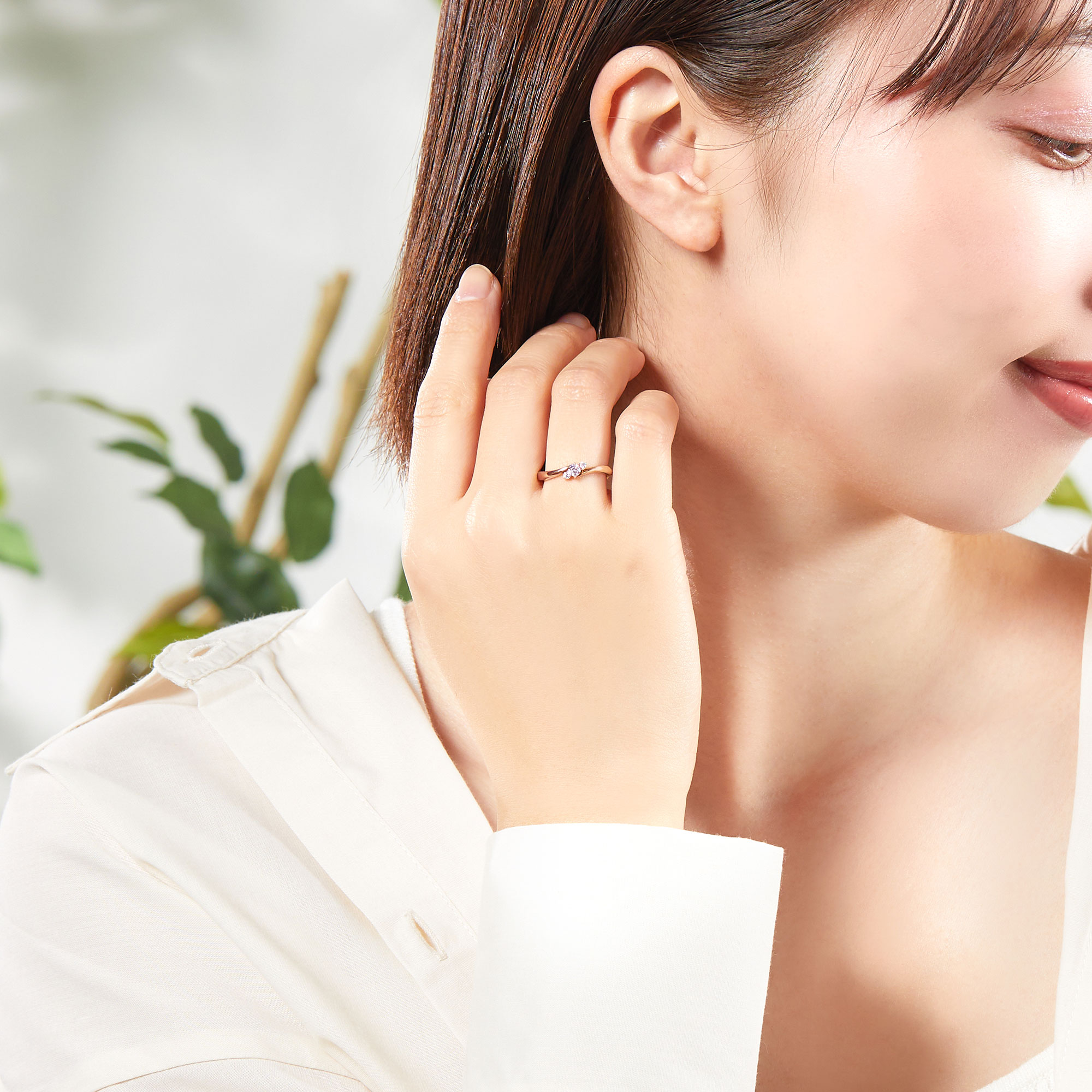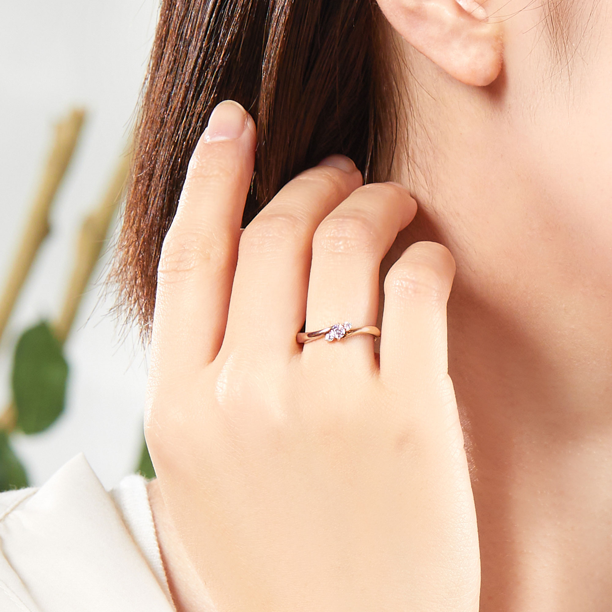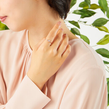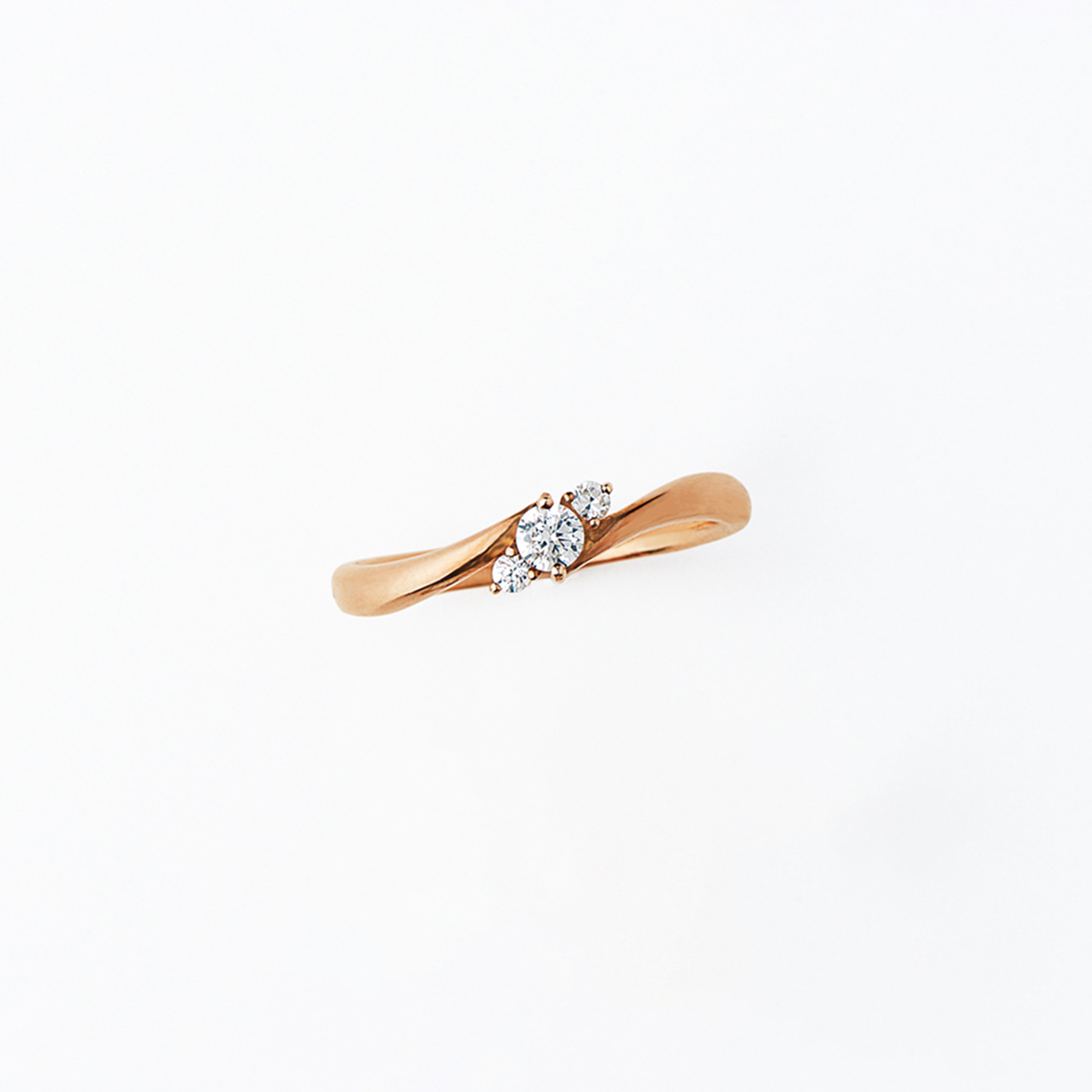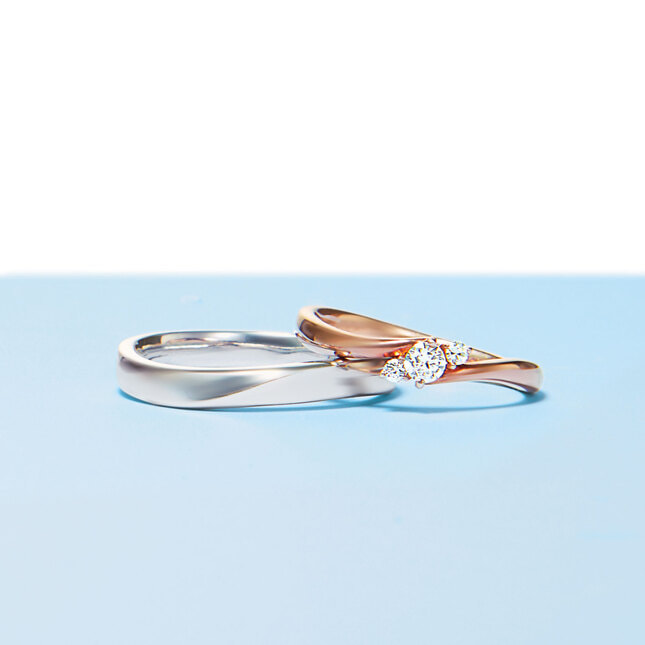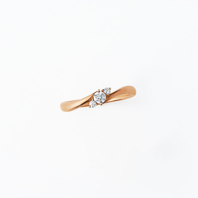 女性らしいピンクゴールドカラーで描いた流れるようなフォルムのペアリング。