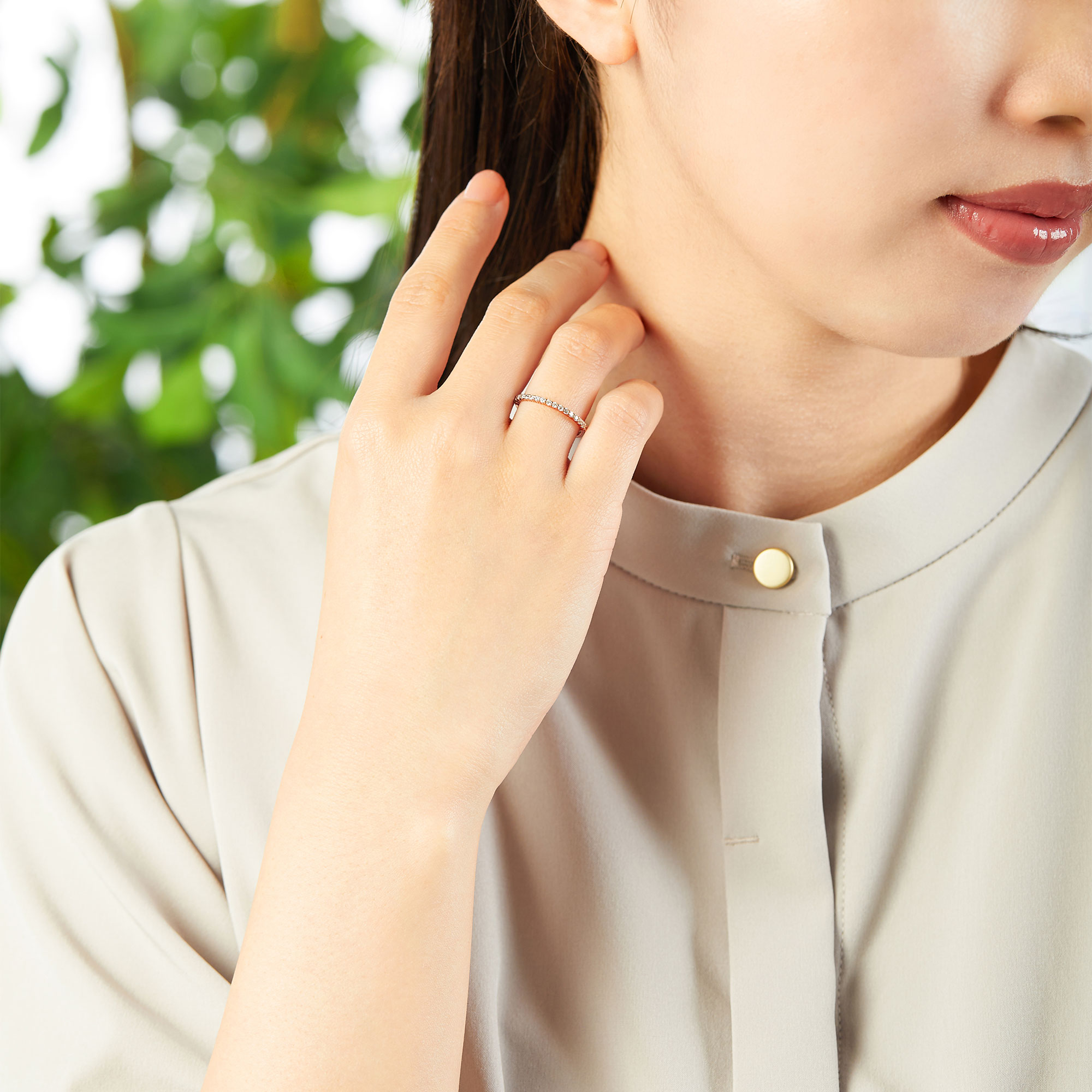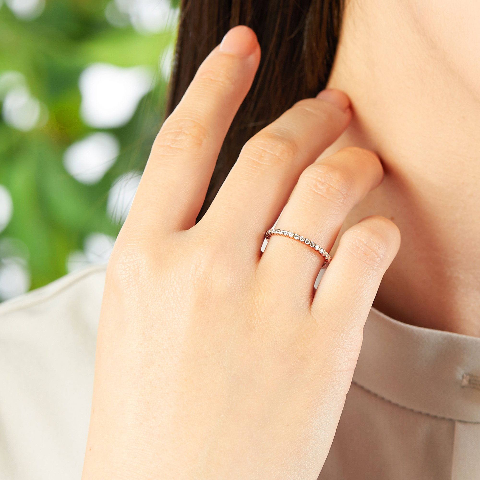 シンプルなデザインなので他のリングとの重ね着けもおすすめ。