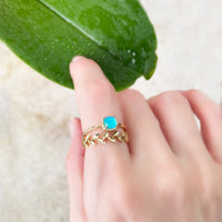 ターコイズとクォーツの2つの石をダブレットという技法で張り合わせています。