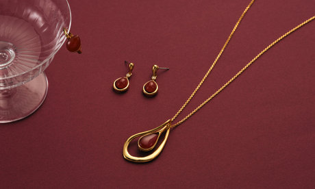 オープンカフェで楽しむグラスワインを思わせる、艶やかなバーガンディーレッドのカーネリアンが印象的なコレクション。チェンジャブル仕様のネックレスは、シャンパンカラーのカットガラスの輝きが華やかにきらめくリバーシブルデザイン。フレームの着脱も可能で多彩な表情を楽しめます。