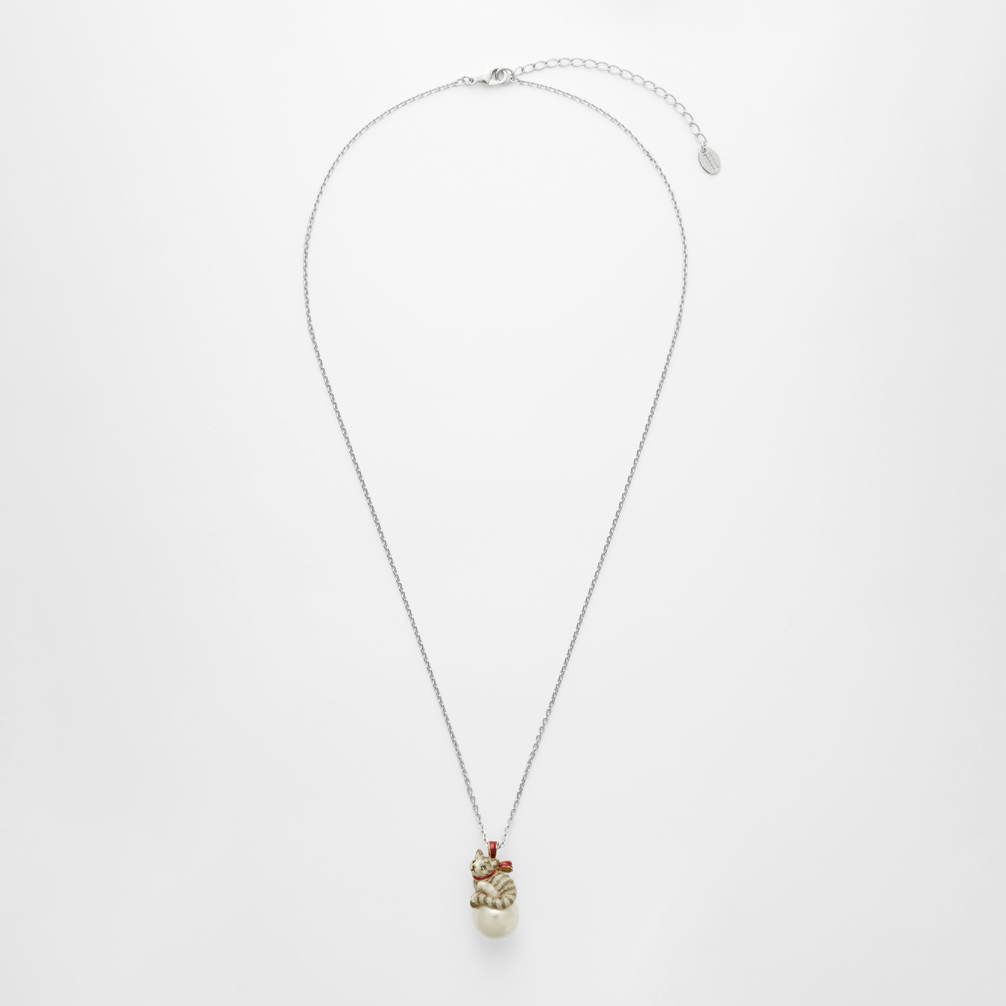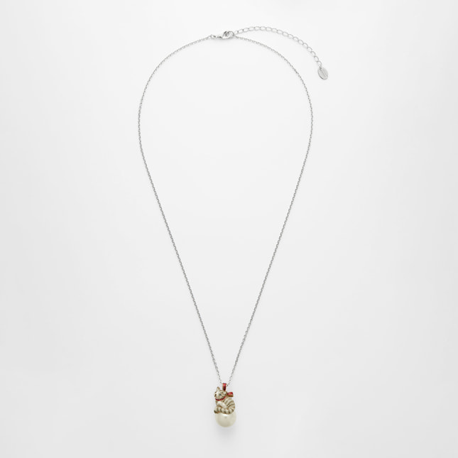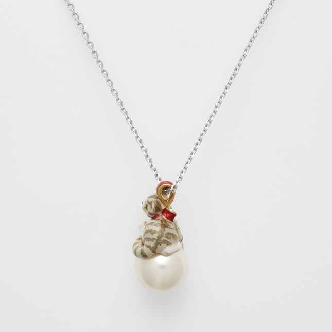 ドイツ・シュニール織のブランド「FEILER(フェイラー)」とのコラボレーションアイテム。猫たちが気ままに毛糸玉とじゃれている姿をデザインしたヴァンドームブティックオリジナルのフェイラー製ハンカチと、オリジナリティー溢れるアクセサリーとのスペシャルなセットです。綺麗なグレーに繊細なチャコールグレーの柄が上品なサバトラ猫。ボールに乗って毛繕いをしようとしている愛らしい姿をネックレスにしました。熟練した職人によって一つ一つ手作業で描かれた縞模様にローズレッドのリボンの差し色がチャーミング。大切な方へのギフトにもぴったりです。パールは、廃材をアップサイクルした「再生プラスティックパール」を使用しています。 ▼ FEILER Collection <LOVELY DOGS Vol.01> はこちらhttps://vendome.jp/vendome_boutique/feature/boutique_feiler2 ▼ FEILER Collection <LOVELY DOGS Vol.02> はこちらhttps://vendome.jp/vendome_boutique/feature/boutique_feiler3 ▼ FEILER Collection <PLAYING CATS> はこちらhttps://vendome.jp/vendome_boutique/feature/boutique_feiler
