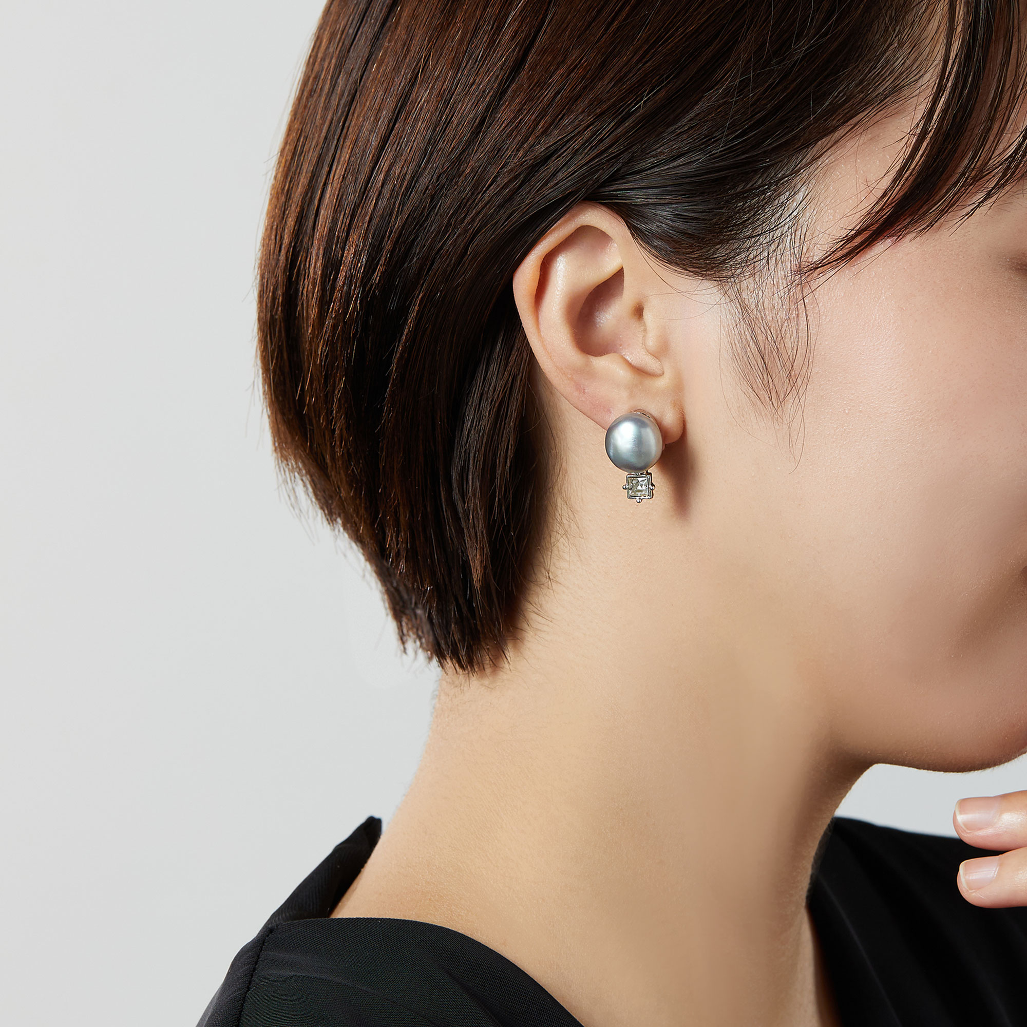厳選した大粒の淡水パールが高級感あふれるイヤリング。グレーパールのリッチで優しい光沢感とスクエアのカットガラスのクールな輝きが、上品に耳元を飾ります。11mm以上の大玉パールを使用したイヤリングは存在感があり、モダンにもエレガントにも、スタイリングに合わせてさまざまなシーンに活躍するアイテムです。※大粒の真珠を使用しておりますので、自然素材ならではのふくらみやへこみ(通称えくぼ)、色の濃淡に個体差がございます。 ▼ DRESS UP 商品一覧はこちらhttps://vendome.jp/vendome_boutique/feature/vendome_boutique_dressup