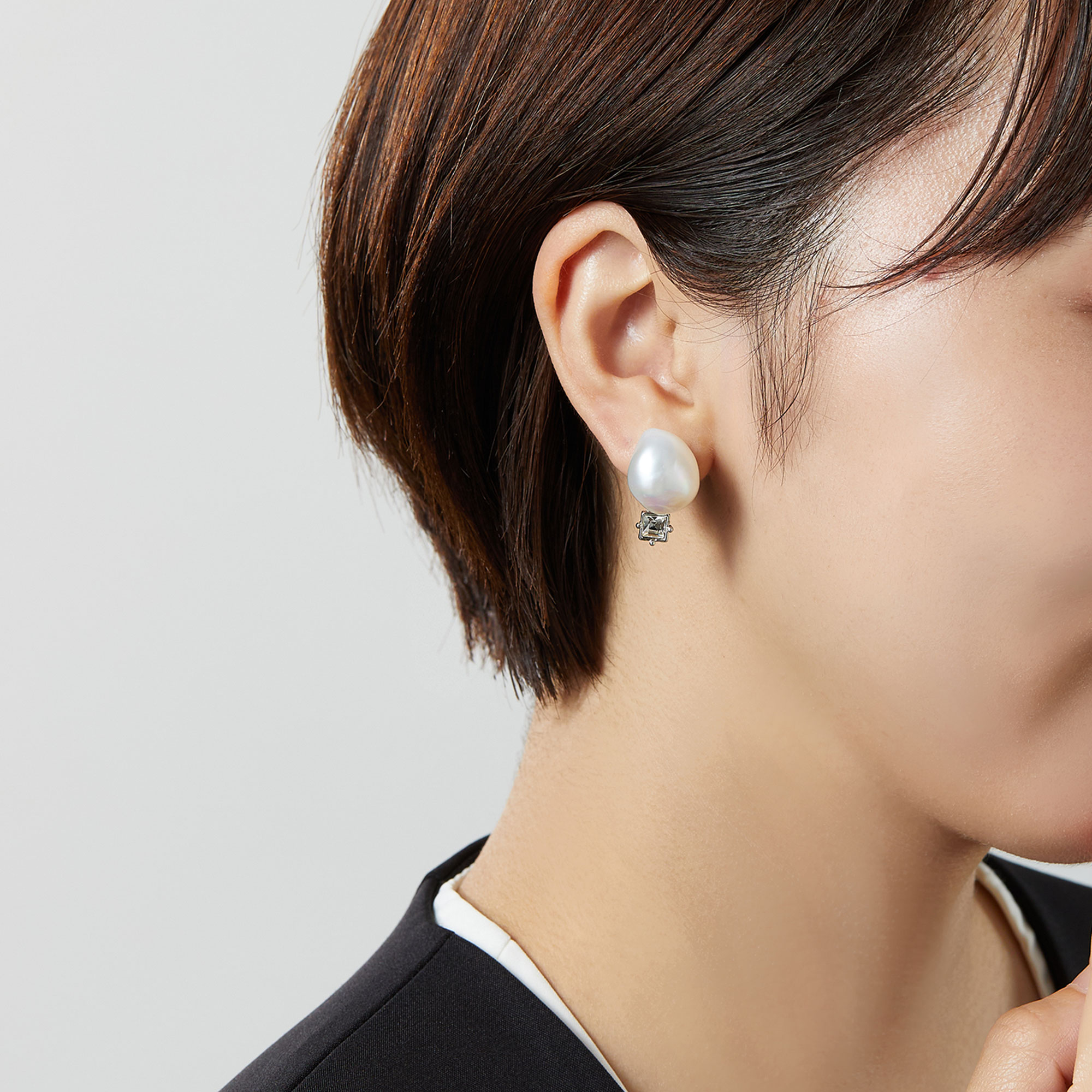 厳選した大粒の淡水パールが高級感あふれるイヤリング。パールのリッチで優しい光沢感とスクエアのカットガラスのクールな輝きが、上品に耳元を飾ります。12mm以上の大玉パールを使用したイヤリングは存在感があり、モダンにもエレガントにも、スタイリングに合わせてさまざまなシーンに活躍するアイテムです。※大粒の真珠を使用しておりますので、自然素材ならではのふくらみやへこみ(通称えくぼ)、色の濃淡に個体差がございます。 ▼ DRESS UP 商品一覧はこちらhttps://vendome.jp/vendome_boutique/feature/vendome_boutique_dressup