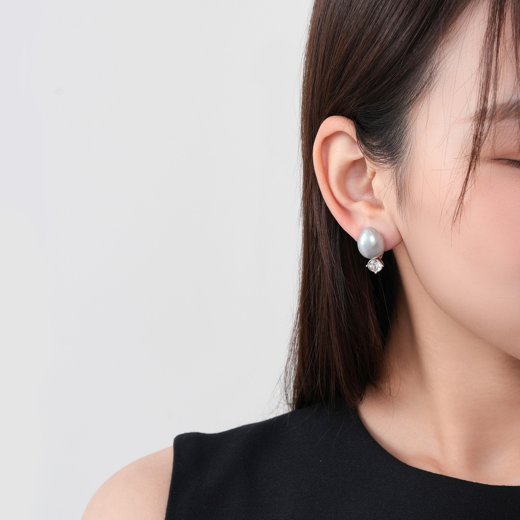 厳選した大粒の淡水パールが高級感あふれるイヤリング。シルバーグレーパールのリッチで優しい光沢感とカットガラスのクールな輝きが、上品に耳元を飾ります。程よい存在感があり、モダンにも、エレガントにも、スタイリングに合わせてさまざまなシーンに活躍するアイテムです。※大粒の真珠を使用しておりますので、自然素材ならではのふくらみやへこみ(通称えくぼ)、色の濃淡に個体差がございます。※素材の特性により多少の個体差がある場合がございます。 ▼ DRESS UP 商品一覧はこちらhttps://vendome.jp/vendome_boutique/feature/vendome_boutique_dressup