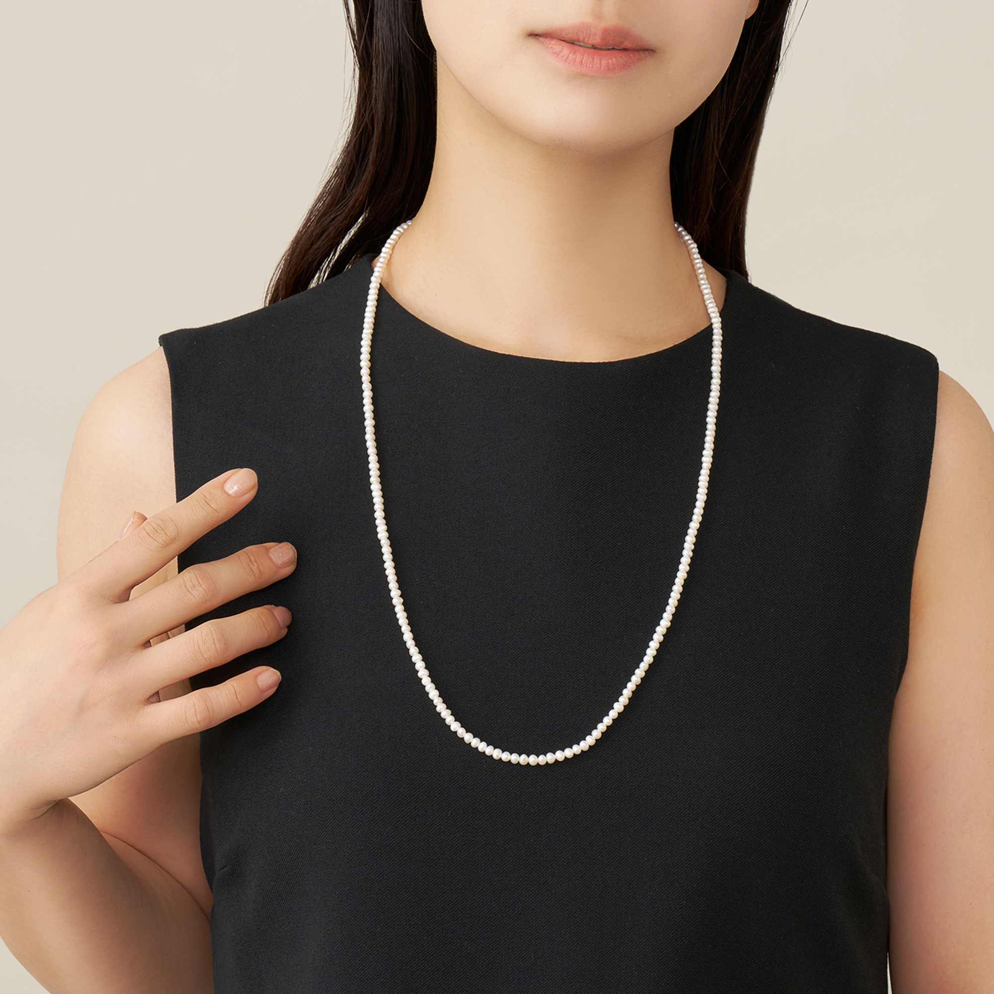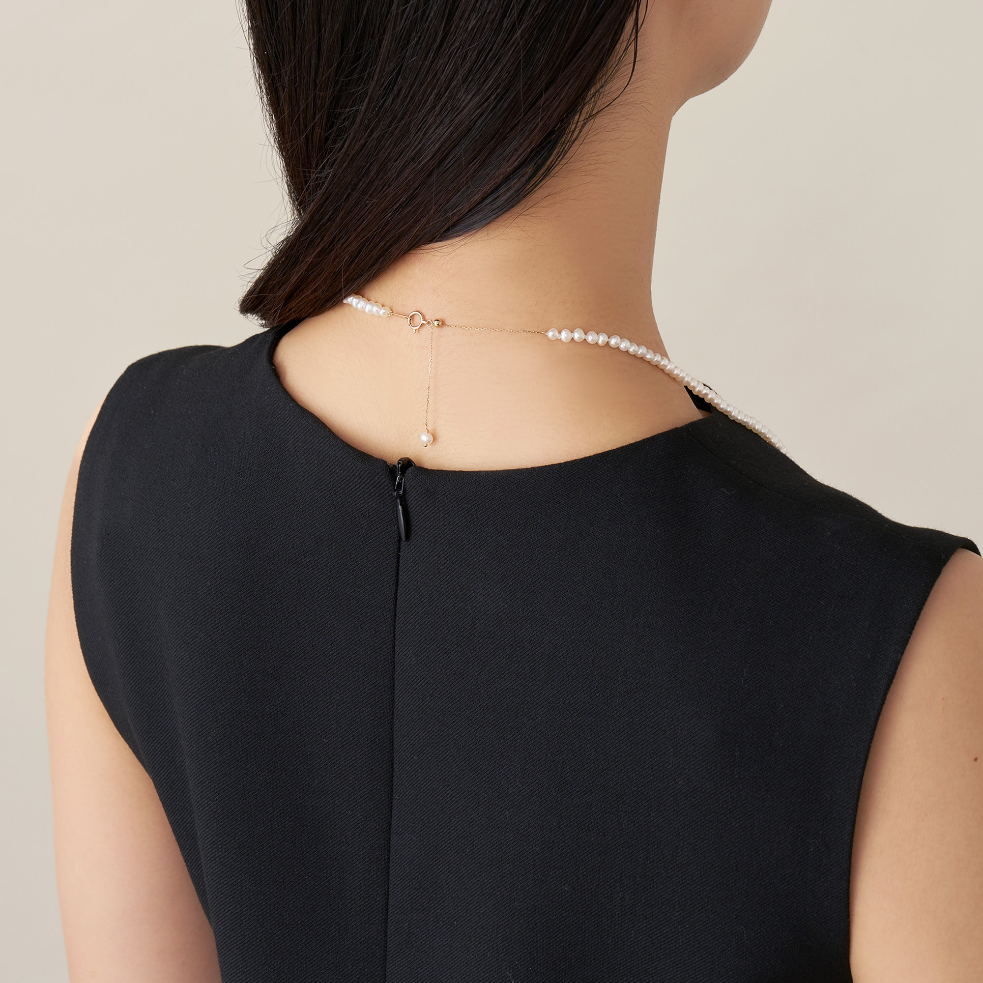 約3.5mm~4mmの淡水パールを使用した、全長約70cmのロングネックレス。淡水パールの艶やかな輝きが胸元を華やかに彩ります。1粒ごとに表情が異なるのが、天然の素材ならではの魅力。スタイルに合わせて長さの調節が可能なスライドアジャスター仕様。シンプルなデザインなので、他のネックレスとのレイヤードコーディネートも楽しめます。スタイリングを華やかにクラスアップさせるアイテムです。アジャスターチェーンと金具部分はK10イエローゴールドを使用しています。※パールには、自然素材ならではのふくらみやへこみ(通称えくぼ)等、個体差がございます。※こちらの商品は無料でスペシャルパッケージにお入れいたします。 ▼ DRESS UP 商品一覧はこちらhttps://vendome.jp/vendome_boutique/feature/vendome_boutique_dressup