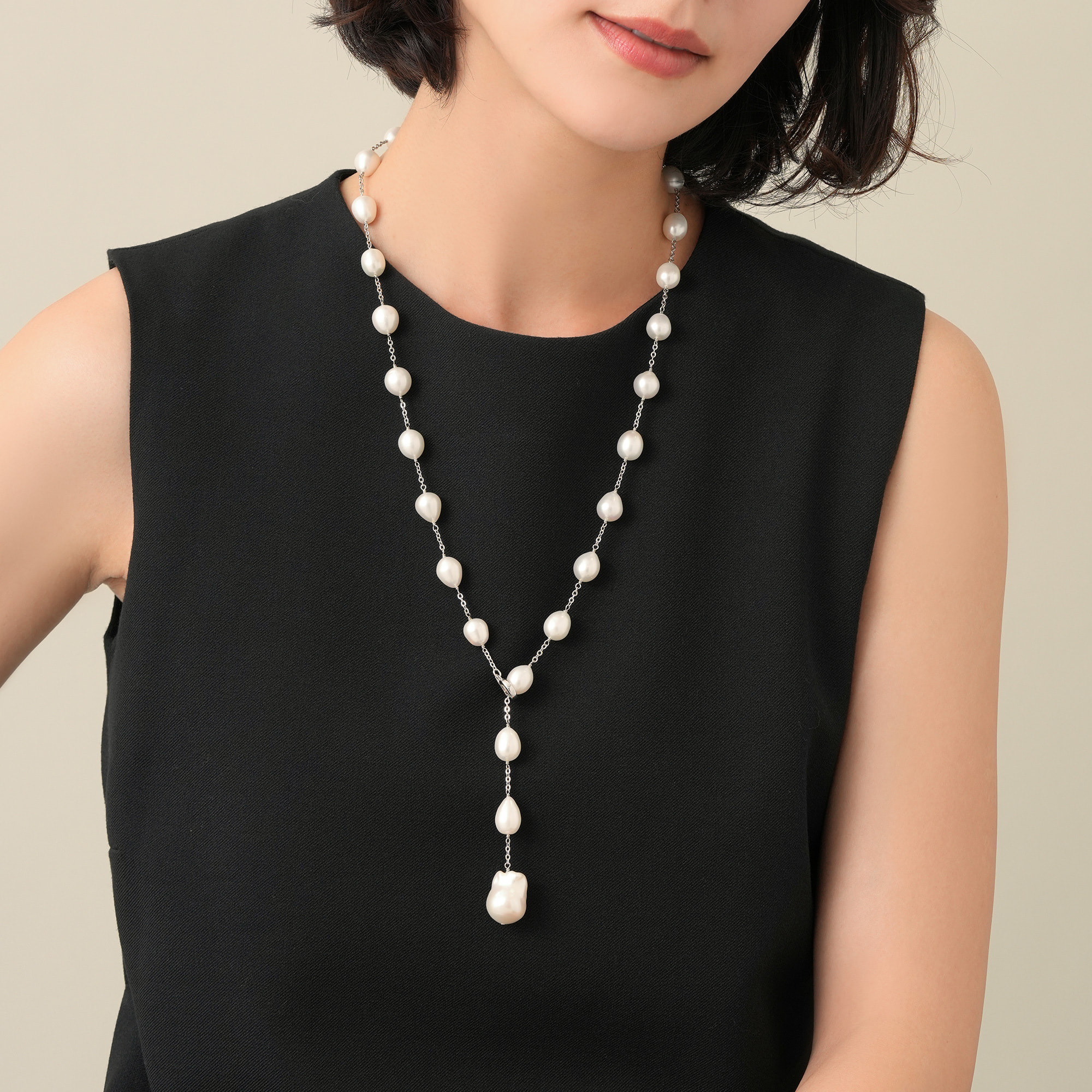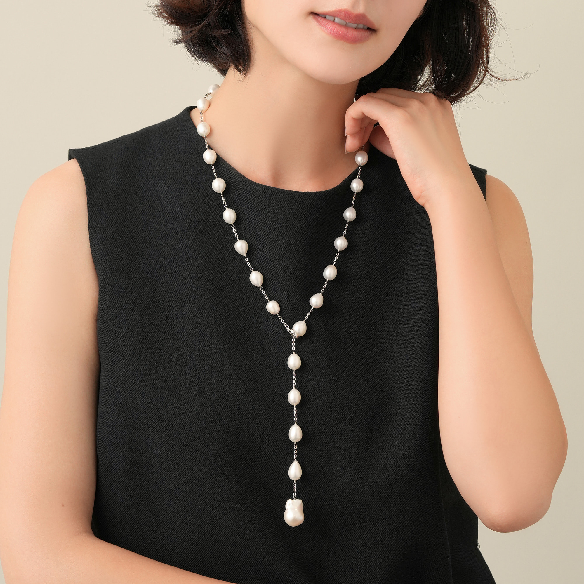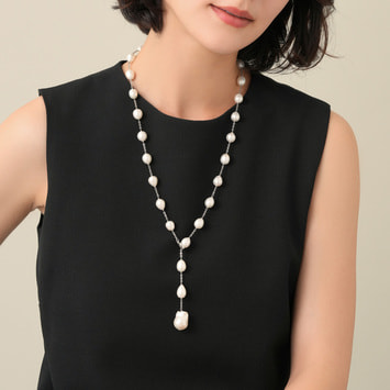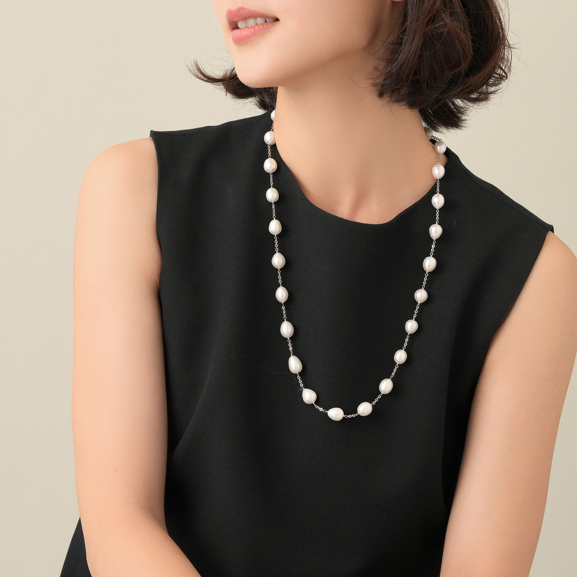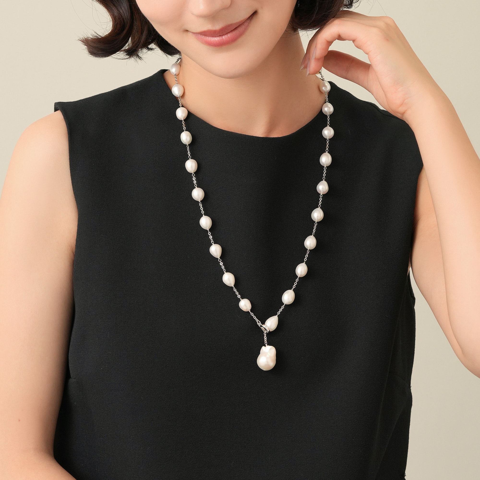 淡水パールの自然なニュアンスと艶やかな光沢が美しいロングネックレス。留め具のクリッカーの着け位置でさまざまなスタイルにお楽しみいただけます。トップには大粒の淡水バロックパールを使用。大人のラグジュアリーな装いをクラスアップさせます。※大粒の真珠を使用しておりますので、自然素材ならではのふくらみやへこみ(通称えくぼ)等、個体差がございます。また長さの調整のため、パールの数が多少変わる場合がございます。※こちらの商品は無料でスペシャルパッケージにお入れいたします。 ▼ DRESS UP 商品一覧はこちらhttps://vendome.jp/vendome_boutique/feature/vendome_boutique_dressup