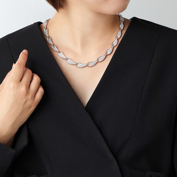 華やかな印象のネックレス。リーフを思わせる軽やかなフォルムのメタルに散りばめられたカットガラスの輝きが、お顔まわりをエレガントに演出。一つ取り入れるだけでコーディネートをクラスアップさせるアイテムです。※こちらの商品は無料でスペシャルパッケージにお入れいたします。 ▼ DRESS UP 商品一覧はこちらhttps://vendome.jp/vendome_boutique/feature/vendome_boutique_dressup