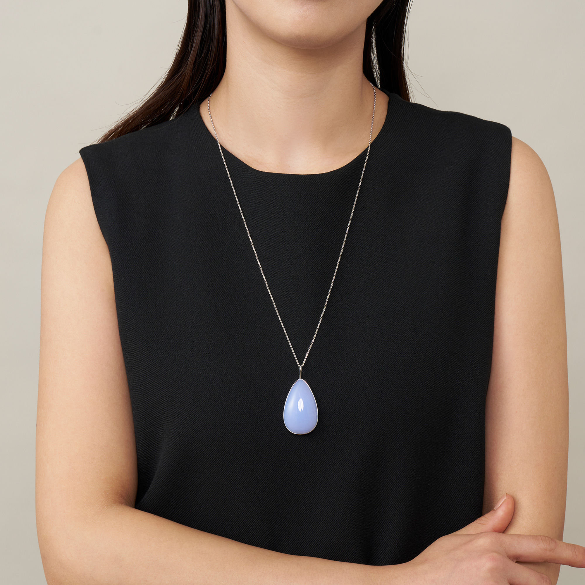 地球が創り出す美しい唯一無二の天然石を、職人が1つ1つ丁寧に作った特別なネックレス。ボリューム感のあるサックスブルーのカルセドニーが、クールな印象を与えます。ブルーカルセドニーの石言葉は「精神の安定」「優しさ」「追憶」。スライドタイプのアジャスターで長さを自在に調節でき、気分やスタイリングに合わせてアレンジが楽しめるアイテムです。※こちらの商品は無料でギフトボックスにお入れいたします。 ▼ DRESS UP 商品一覧はこちらhttps://vendome.jp/vendome_boutique/feature/vendome_boutique_dressup