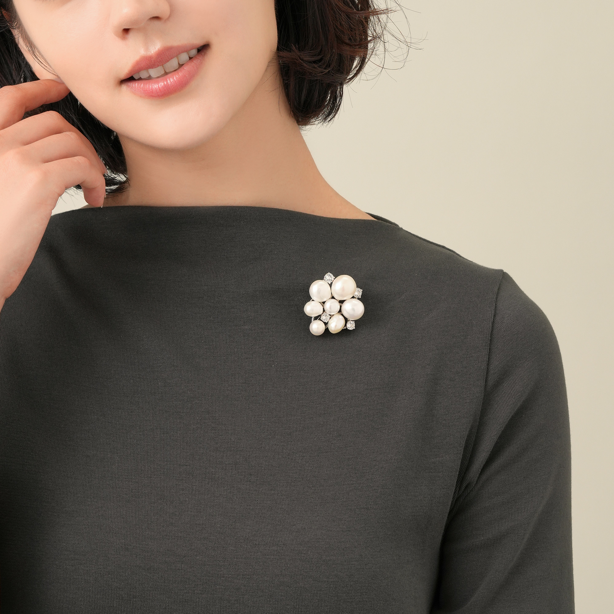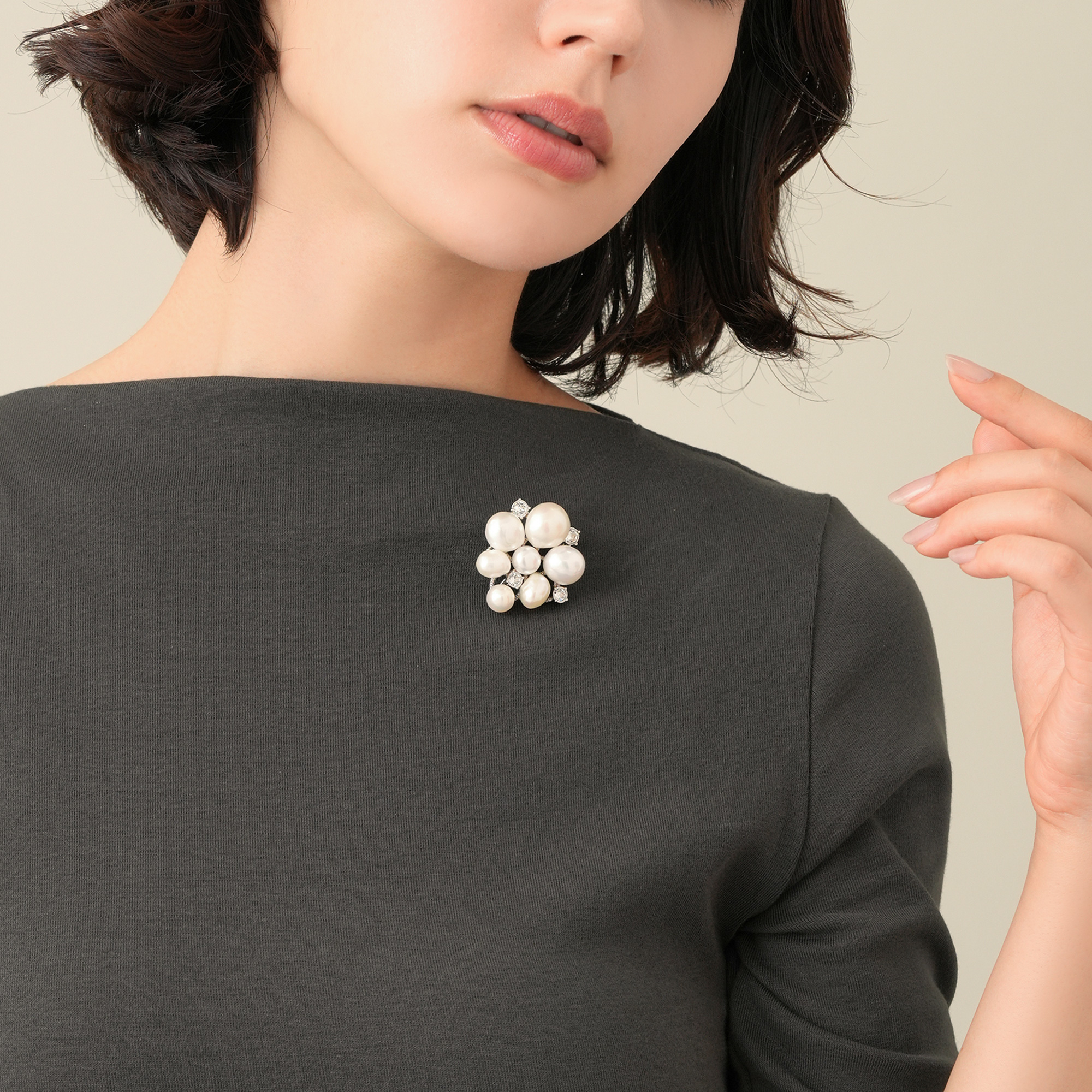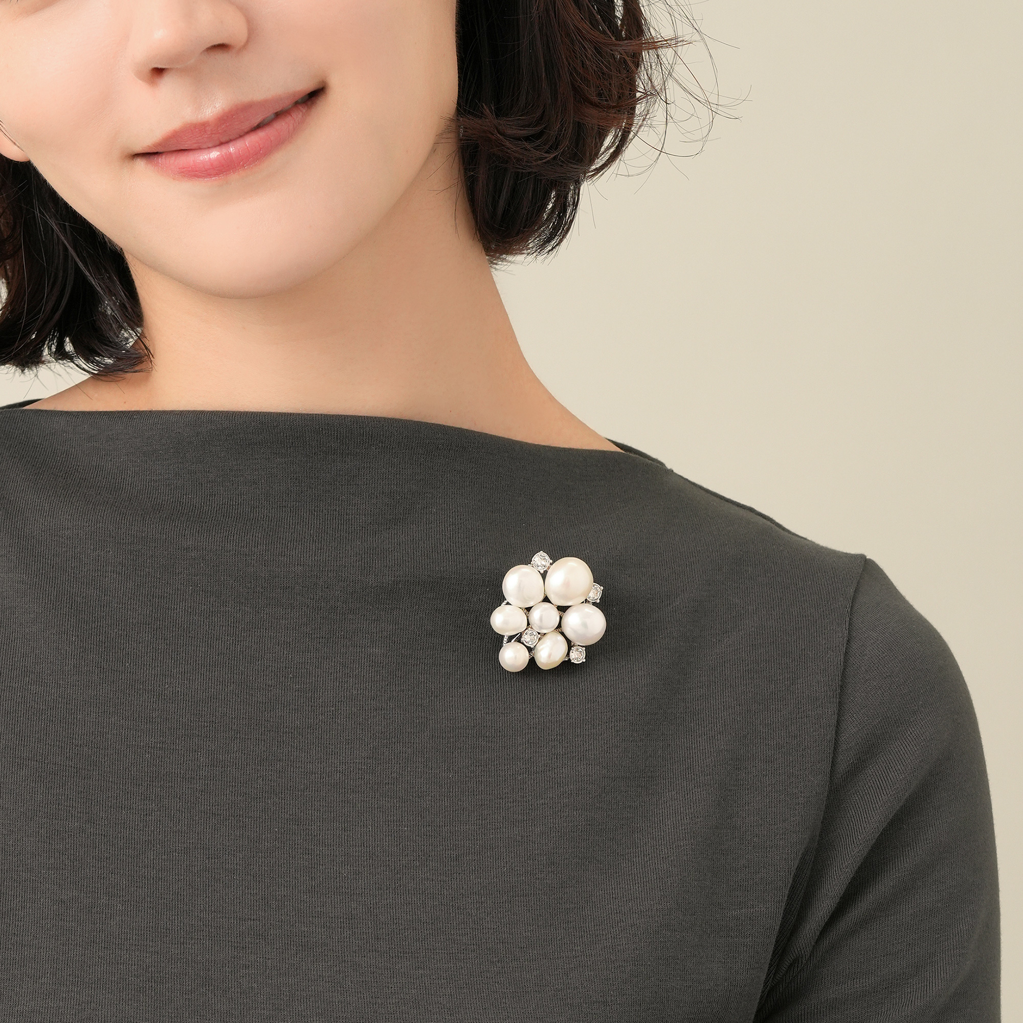厳選したパールの自然なフォルムと光沢が美しいブローチ。1粒ずつ表情の違う淡水パールを丁寧にセッティング。パールが持つ独特な柔らかさと、カットガラスとのコンビネーションで胸元をリッチで華やかに飾ります。モダンにもフォーマルにも演出し、さまざまなスタイリングに合わせやすいシンプルで上品なブローチです。※大粒の真珠を使用しておりますので、自然素材ならではのふくらみやへこみ(通称えくぼ)、色の濃淡に個体差がございます。※こちらの商品は無料でスペシャルパッケージにお入れいたします。 ▼ DRESS UP 商品一覧はこちらhttps://vendome.jp/vendome_boutique/feature/vendome_boutique_dressup