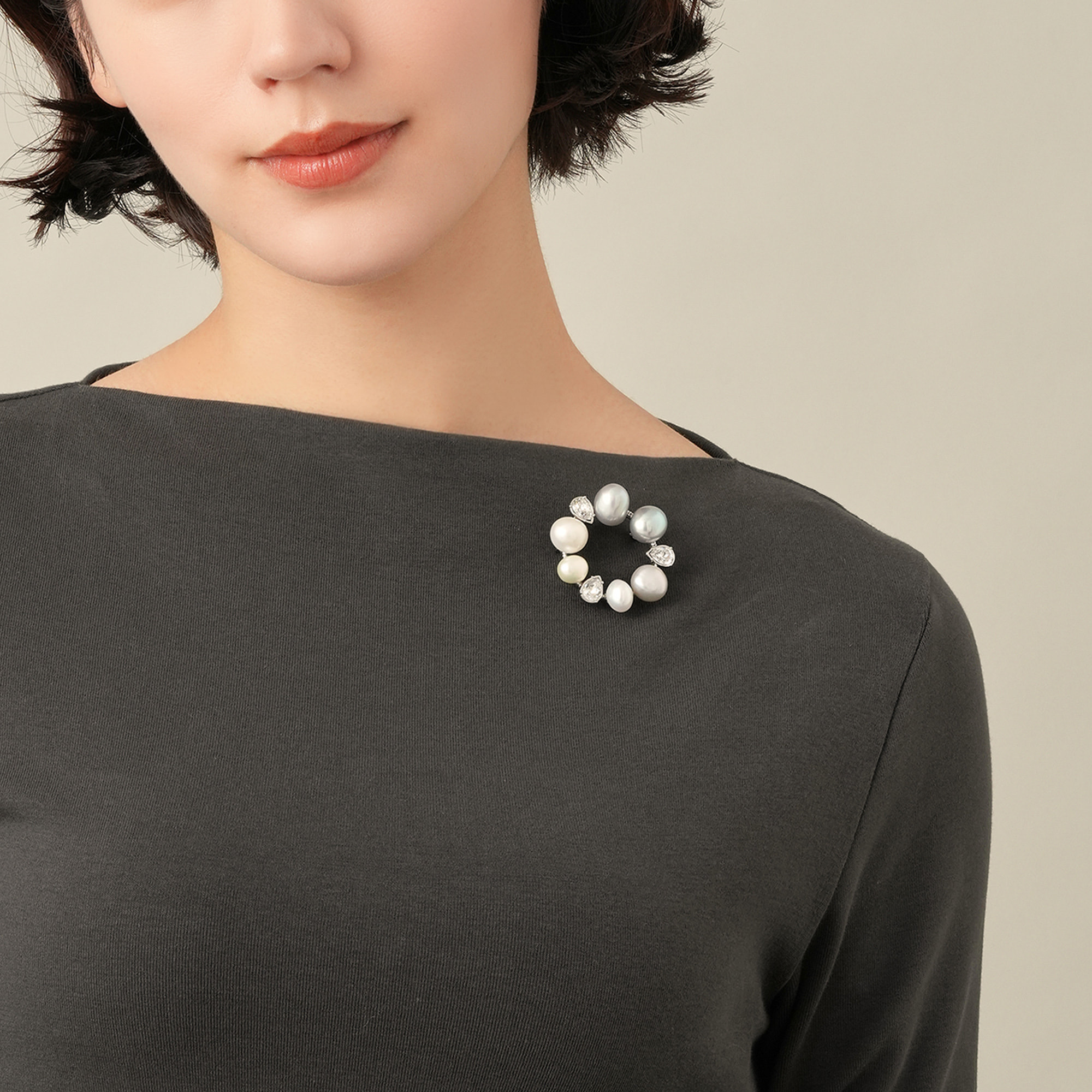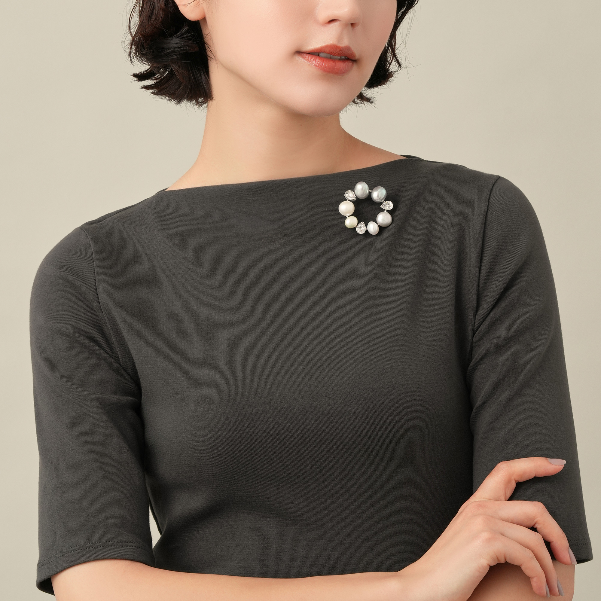淡水パールの自然なフォルムと光沢が美しいブローチ。グレーからホワイトの表情豊かで 繊細な色合いの淡水パールを丁寧にセッティングしました。パールが持つ独特な柔らかさとペアシェイプのカットガラスとのコンビネーションが魅力。シンプルで上品なデザインは、胸元をリッチで華やかに飾ります。様々なスタイリングをエレガントにクラスアップするアイテムです。※パールは自然素材ならではのふくらみやへこみ(通称えくぼ)、色の濃淡に個体差がございます。※こちらの商品は無料でスペシャルパッケージにお入れいたします。 ▼ DRESS UP 商品一覧はこちらhttps://vendome.jp/vendome_boutique/feature/vendome_boutique_dressup