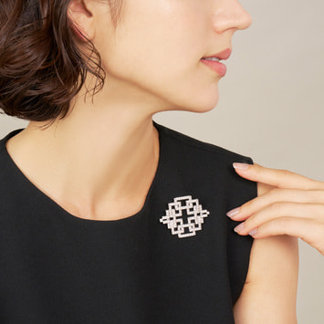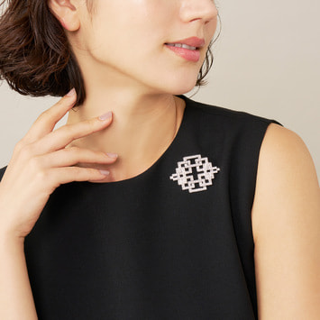 カットガラスが煌めく、上品でスタイリッシュな印象を与えるブローチ。スクエアが重なり合った緻密で透け感のあるデザインが、大人のエレガンスを演出します。デイリーからフォーマルまで幅広いシーンでお使いいただけます。いつものスタイリングに華やかさをプラスしてくれるブローチです。 ▼ DRESS UP 商品一覧はこちらhttps://vendome.jp/vendome_boutique/feature/vendome_boutique_dressup