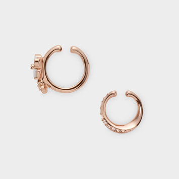 シャープなラインのイヤーカフは、煌めくカットガラスのコントラストが、都会的な抜け感を演出。