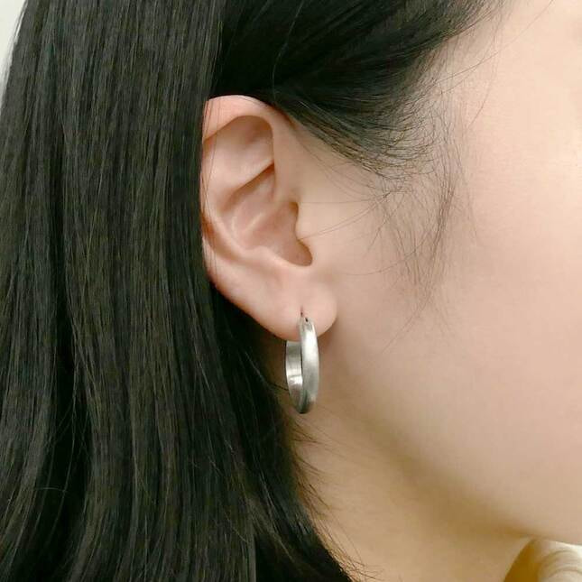 マットホワイトカラーの輝きが上品なフープピアス。